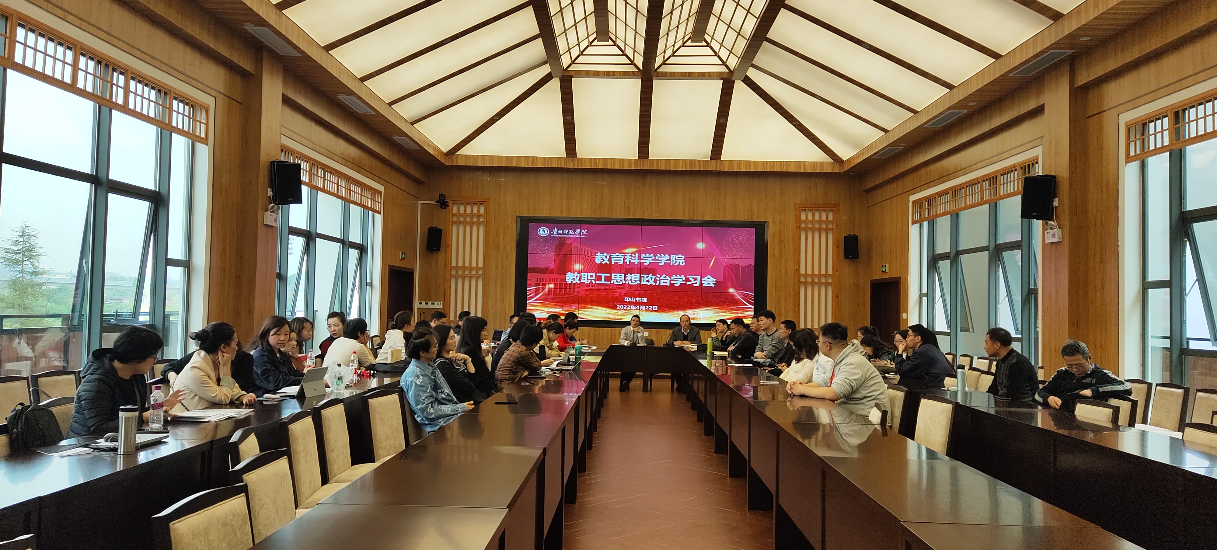 在印山书院举行教职工思想政治学习会,院党委书记彭祥友主持学习会,学院班子成员以及全体教职工参加。