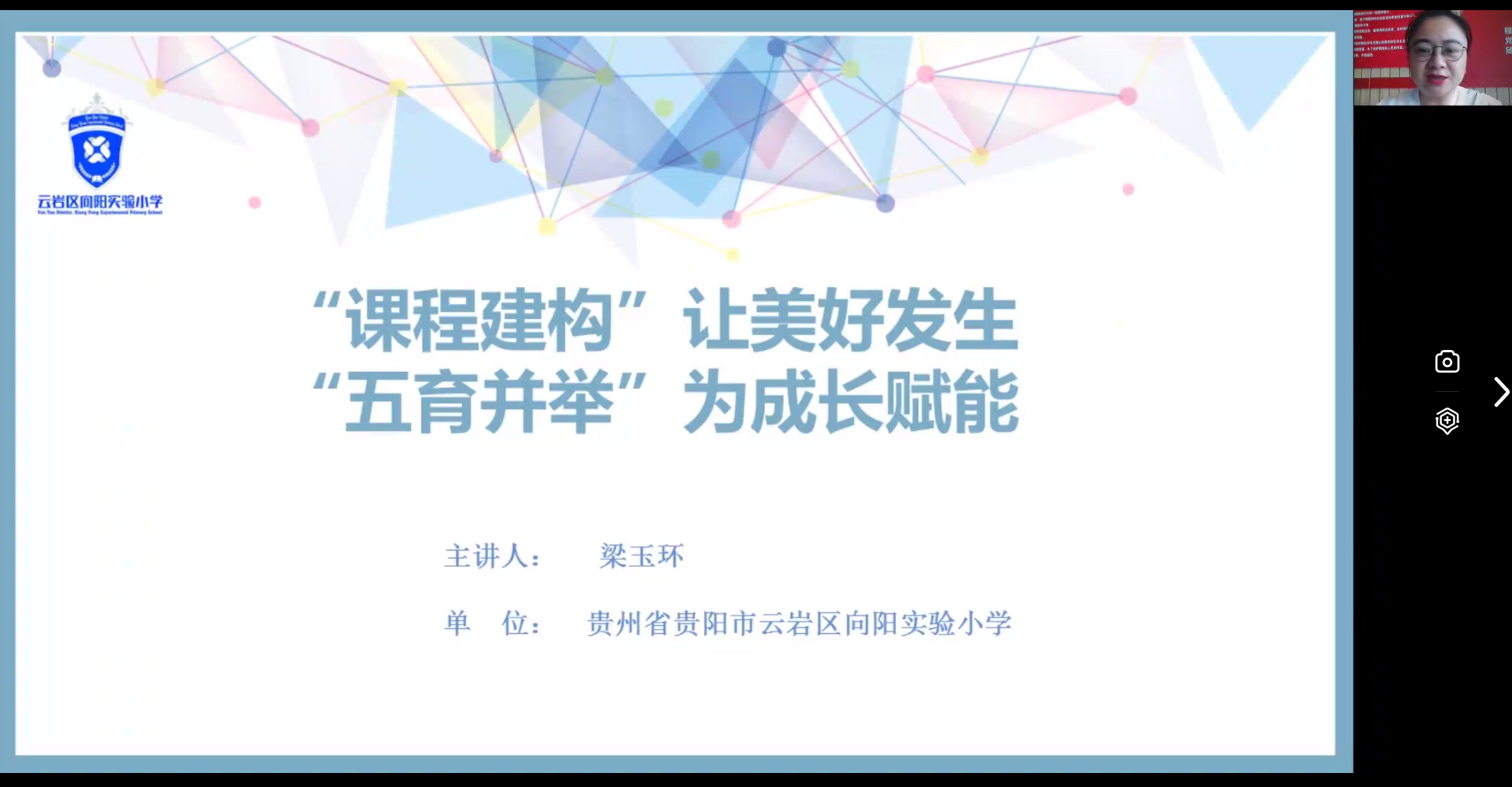 6月5日晚,艺术教育专业特邀贵阳市云岩区向阳实验小学教导主任梁玉环老师,为艺术教育专业2019级、2020级、2021级三个年级的同学们开展了“课程建构”让美好发生,“五育并举”为成长赋能的专题讲座,本次讲座因疫情原因,以网络的形式进行,艺术教育系系主任马慧慧主持了本次讲座。