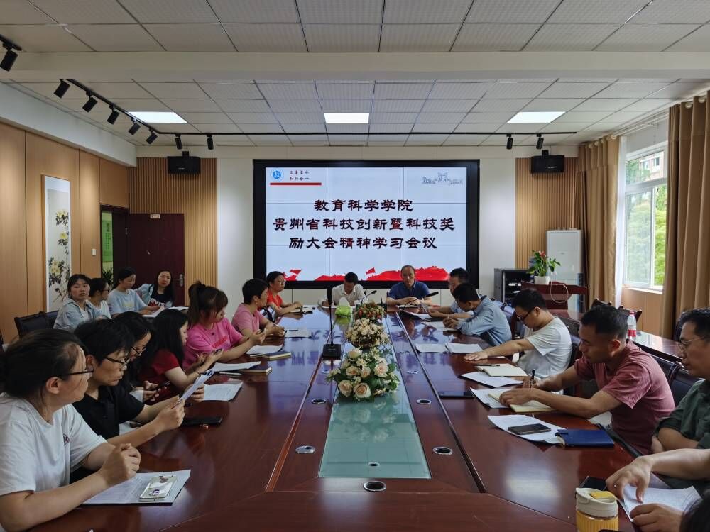2022年6月24日下午,动漫花园 召开学习贯彻贵州省科技创新暨科技奖励大会精神学习会议,院领导班子成员及全体教师参加,会议由院长宋万琚主持。