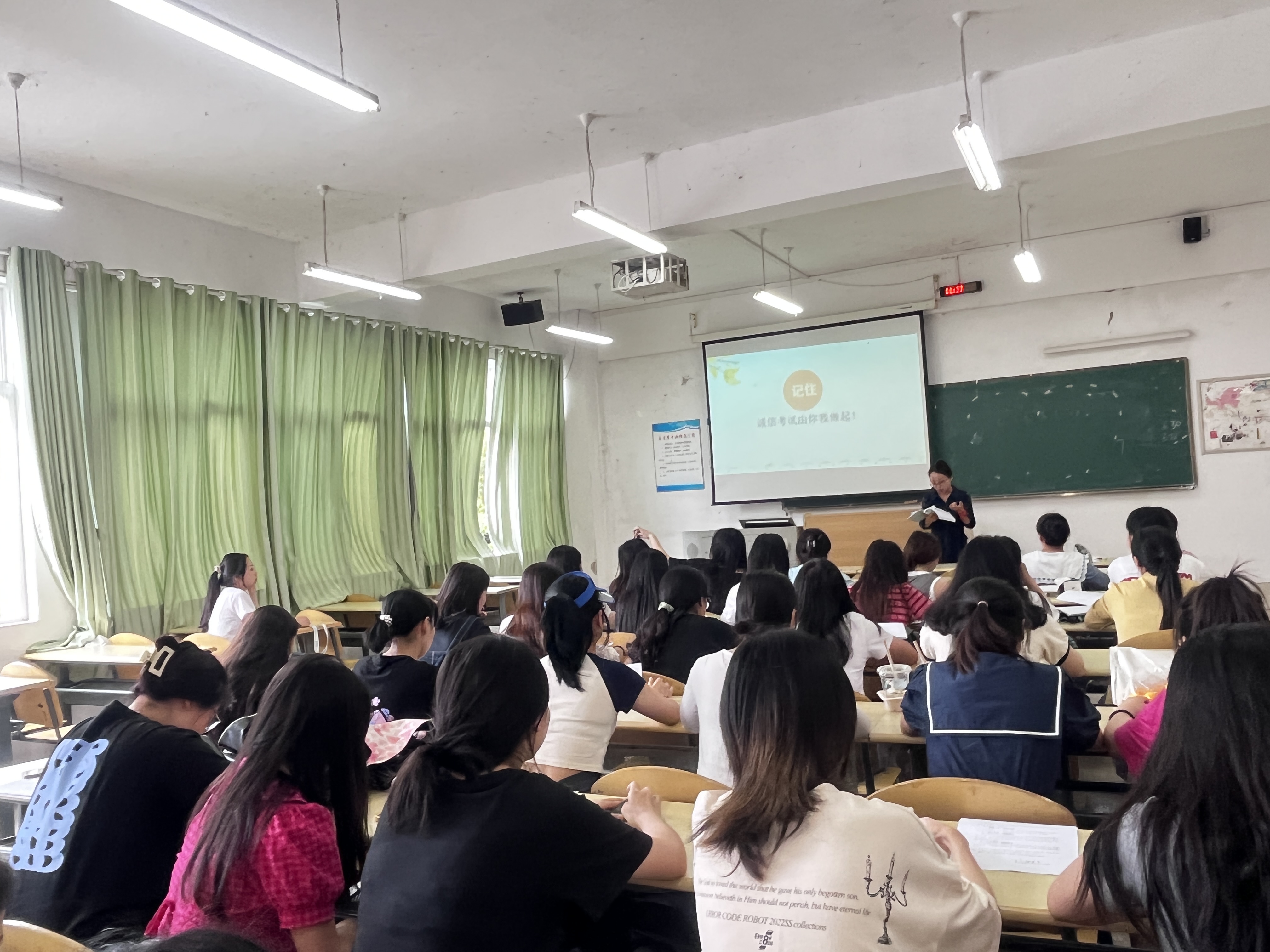 学生违纪处分办法》等规章制度中有关组织作弊、替考、考试作弊等违纪处分相关政策规定,并结合对违纪案例的分析,让同学们清楚的认识到考试作弊对自身的严重危害性。紧接着,游超颖强调,要充分发挥学生党员、班干部在复习迎考和诚信考试中的榜样示范作用,严禁作弊事件发生,并对考试作弊的不良影响进行分析,教育引导同学们树立诚实考试、抵制作弊的思想观念,以正确的态度和充分的复习迎接期末考试。最后,每位同学认真阅读并签订了《诚信考试倡议书》。