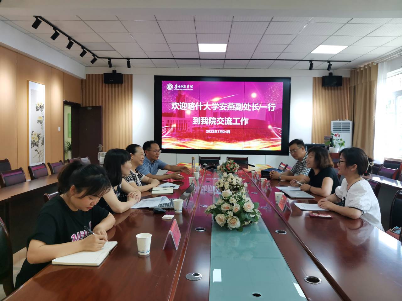 会议室进行。首先,安燕副处长详细介绍了喀什大学的办学情况,并就学科发展、专业建设、人才培养等方面的工作提出了需要深入交流与合作的话题。邓琴处长在介绍完动漫花园