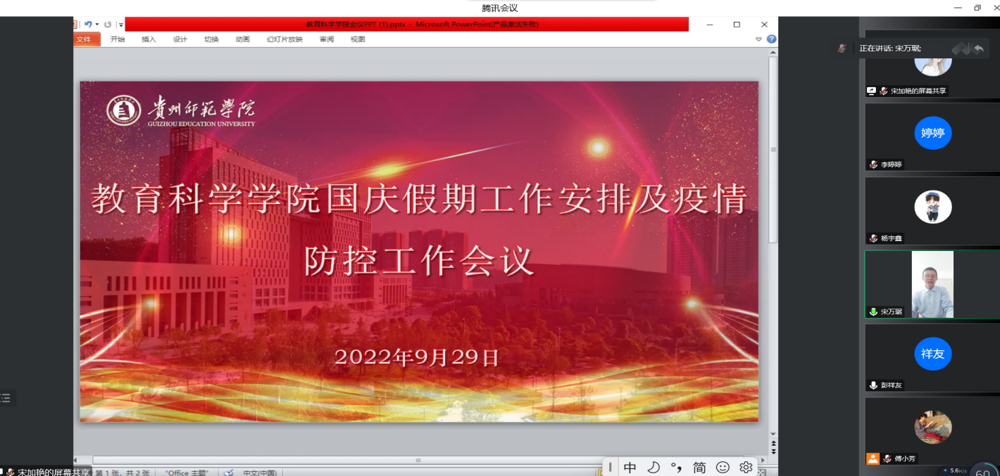 的安全稳定,9月29日20:30,我院召开国庆假期工作安排及疫情防控工作会议,会议由院长宋万琚主持。