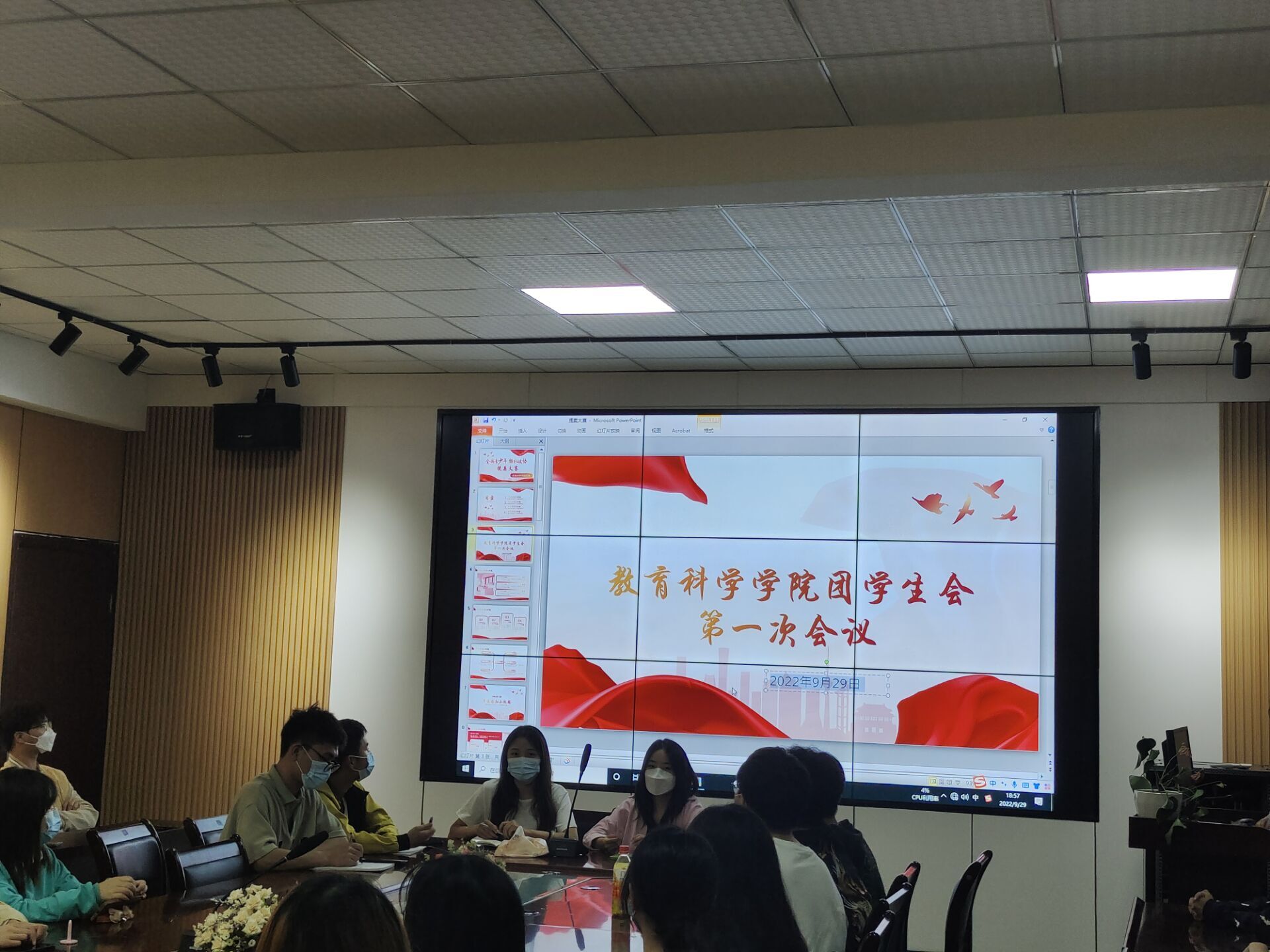 10月11日下午,教科院团委学生会同学们在逸夫楼会议室举行了第十四届团委学生会第一次全体会议,会议由团委学生会主席耿鋆和团委副书记田叶惠主持,团委书记张源线上参加。