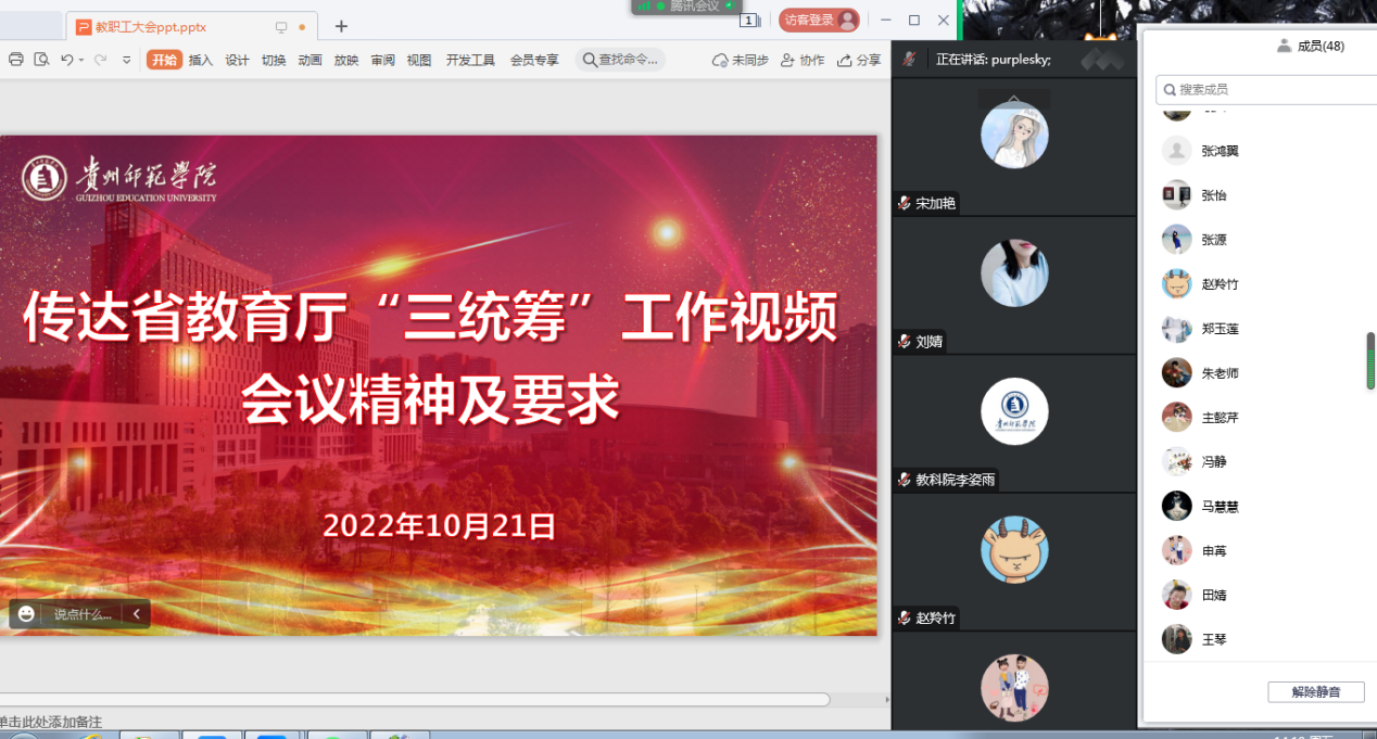 采用线上线下相结合的方式召开会议,传达学习省教育厅“三统筹”工作和学校安全稳定工作会议精神,会议由院长宋万琚主持,全院教职工参加了会议。