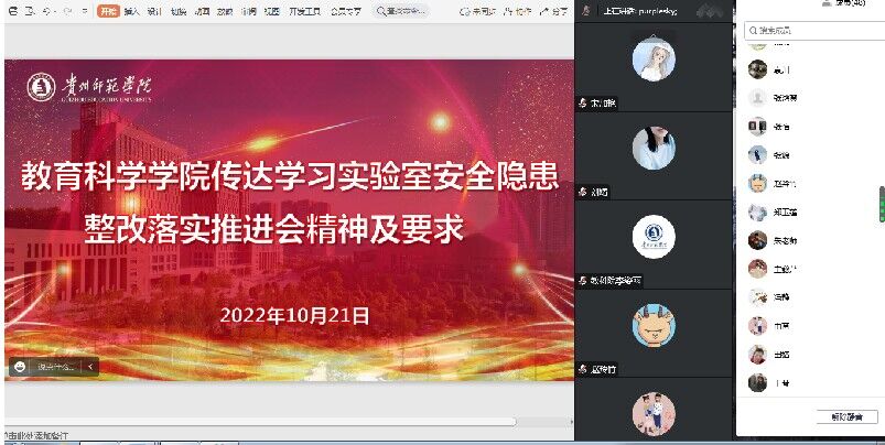 最后,宋万琚强调:1.进一步明确管理职责,构建学院分管领导--实验室管理负责人--实验室责任教师的三级管理体系;2.进一步提高思想认识,加强实验室安全隐患再排查,对存在的问题进行立行立改,明确整改时限和责任人;3.进一步抓好工作落实,做到防患于未然,按照学校教务处要求,为线下教学恢复提供保障,每周五上报整改完成情况。