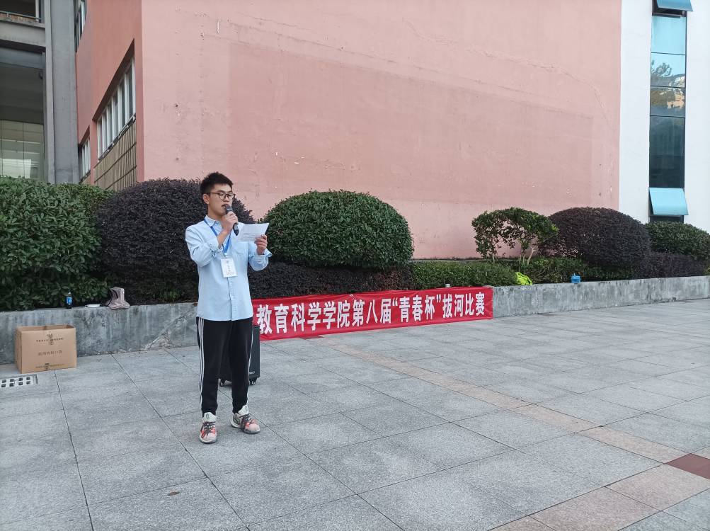 11月1日,教育科学学院第八届“青春杯”拔河比赛在凤凰广场举行了开幕式,由团委学生会副书记书孙棋缘进行主持。