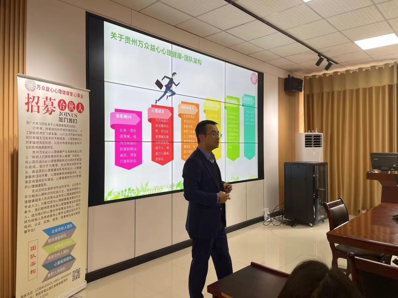 2023届应用心理学专业毕业生现场招聘会在逸夫楼学院会议室A321召开。此次招聘会邀请到了贵州万众益心心理健康产业发展有限公司总经理熊强刚到我院宣讲,会议由负责就业工作的辅导员鲁蓓蓓以及应用心理学系主任倪磊主持。