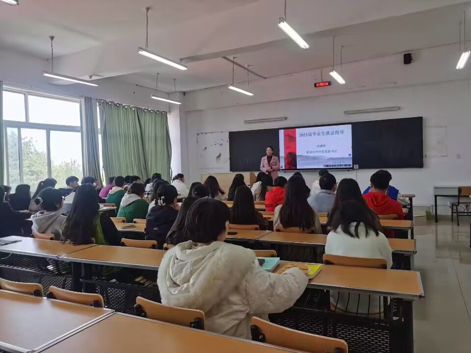 在逸夫楼602教室举行2023届毕业生就业育人主题讲座。此次讲座的主讲人是学院党委书记肖湘萍和团委书记张源。2023届全体毕业生参加了此次讲座。