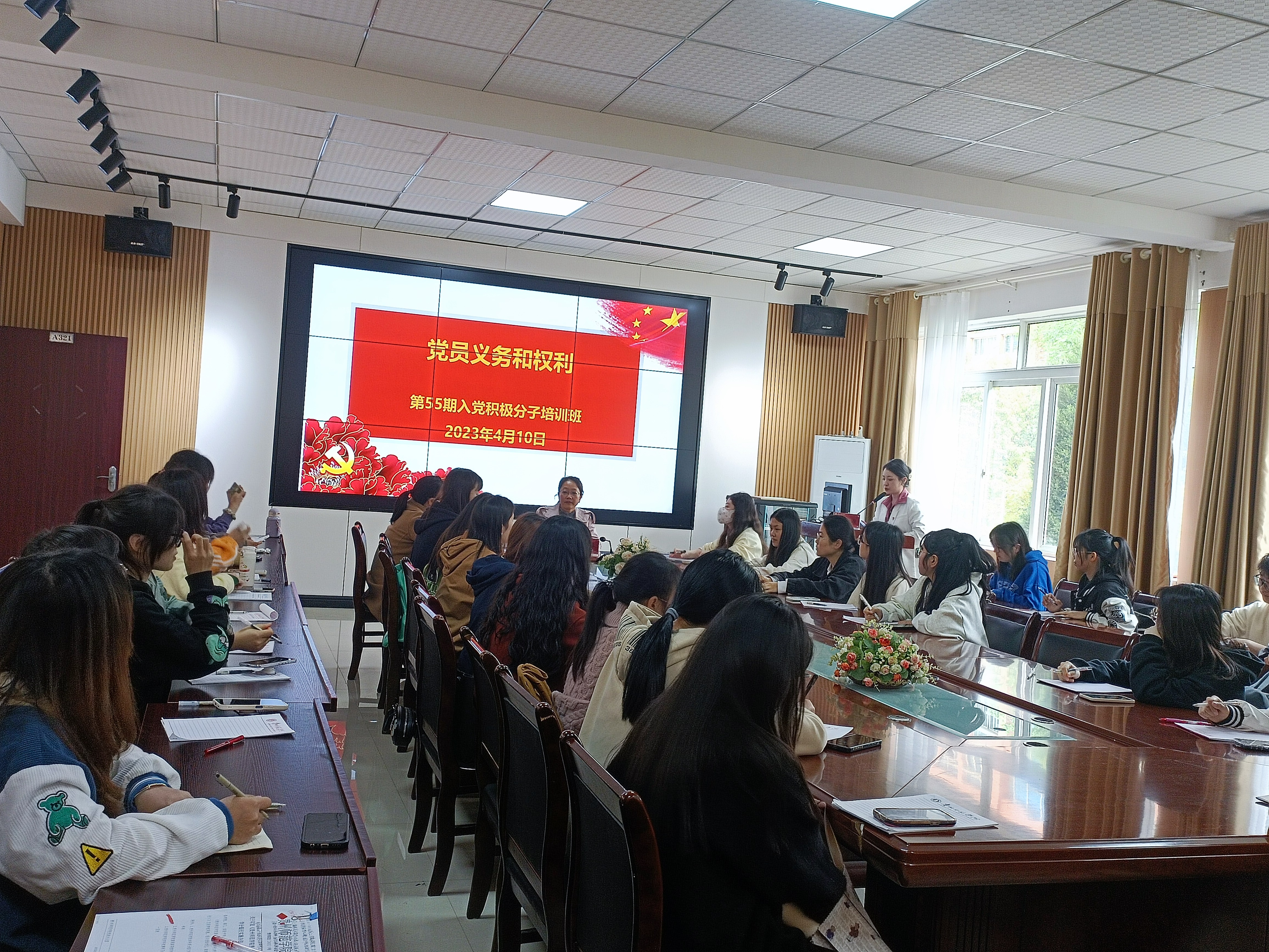 在学院会议室开展第55期入党积极分子培训班开班典礼暨第一次专题党课。学院党委书记肖湘萍、学院党委副书记傅小芳、学院学生党支部书记张源以及全体入党积极分子参加了开班典礼。