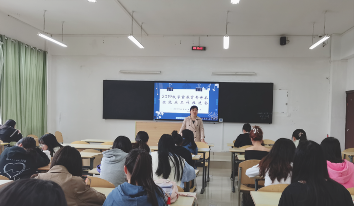 2019级学前教育专升本班在逸夫楼404教室召开“2019级学前教育专升本班就业工作推进会”。学院党委副书记傅小芳、辅导员游超颖和2019级学前教育二班全体同学参与了此次班会。
