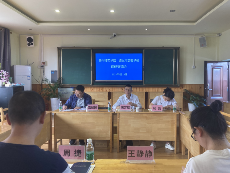 宋万琚一行在三所特殊教育学校领导、中层干部的陪同下参观校园、观摩教学,在各校召开访企拓岗调研座谈会上,针对特殊教育、学前教育、艺术教育、应用心理学等四个专业咨询了学校近年教师招聘情况和岗位计划数,为学校推荐我校2023届毕业的学生,了解我院实习生、毕业生在工作岗位履职尽责的状况。同时还对基础教育教育硕士需求(教育管理等专业领域)进行了进行了相关的交流,各单位对我校特殊教育专业毕业生和实习生均比较满意,认为他们有良好的专业素养,踏实肯干的工作态度和对特殊教育的深厚情怀,遵义市启智学校的2位中层干部就毕业于我校特殊教育专业。