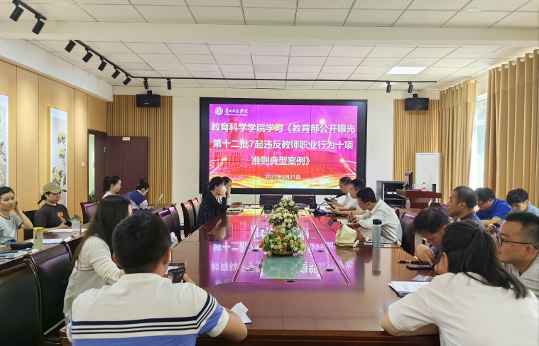 在学院会议室开展了《教育部公开公开曝光第十二批7起违反教师职业行为十项准则典型案例》的学习活动。本次活动由院长宋万琚主持,副院长袁川领学,全院教职工参与了本次活动。