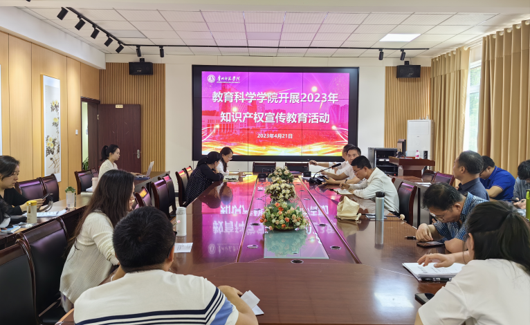2023年4月21日,动漫花园 在学院会议室开展以“加强知识产权法治保障,有力支持全面创新”为主题的知识产权宣传教育活动。本次活动由院长宋万琚主持,副院长袁川领学,全院教职工参与了本次学习活动。