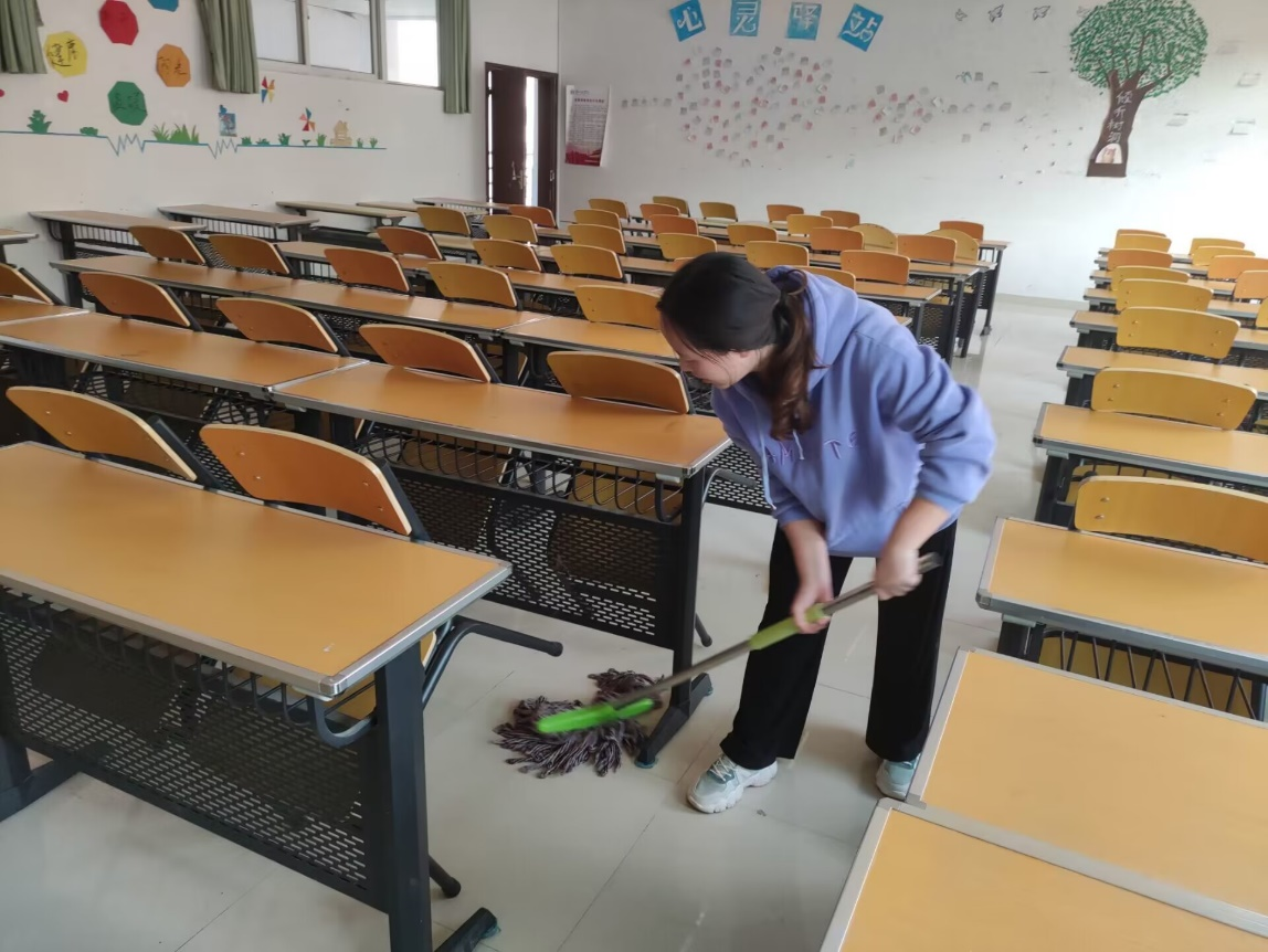 劳动铸就梦想,奋斗书写精彩。环境因劳动而改变,生活因劳动而美好,我院组织2020级、2021级、2022级13个班共54名学生对我院11间教室、3条走廊、2个公共区域、1间舞蹈教室b402、四楼读书时空进行了全方位、无死角的卫生大清理。活动前,我院号召全体师生要以积极的态度、饱满的热情认真的完成五一劳动清扫活动。活动中,同学们以不惧苦累,埋头苦干,挥洒汗水,忘我劳动的样子在我院各角落形成了一道道靓丽的风景线。经过同学们的共同努力,我院卫生环境得到了进一步改善,整个学院面貌焕然一新。