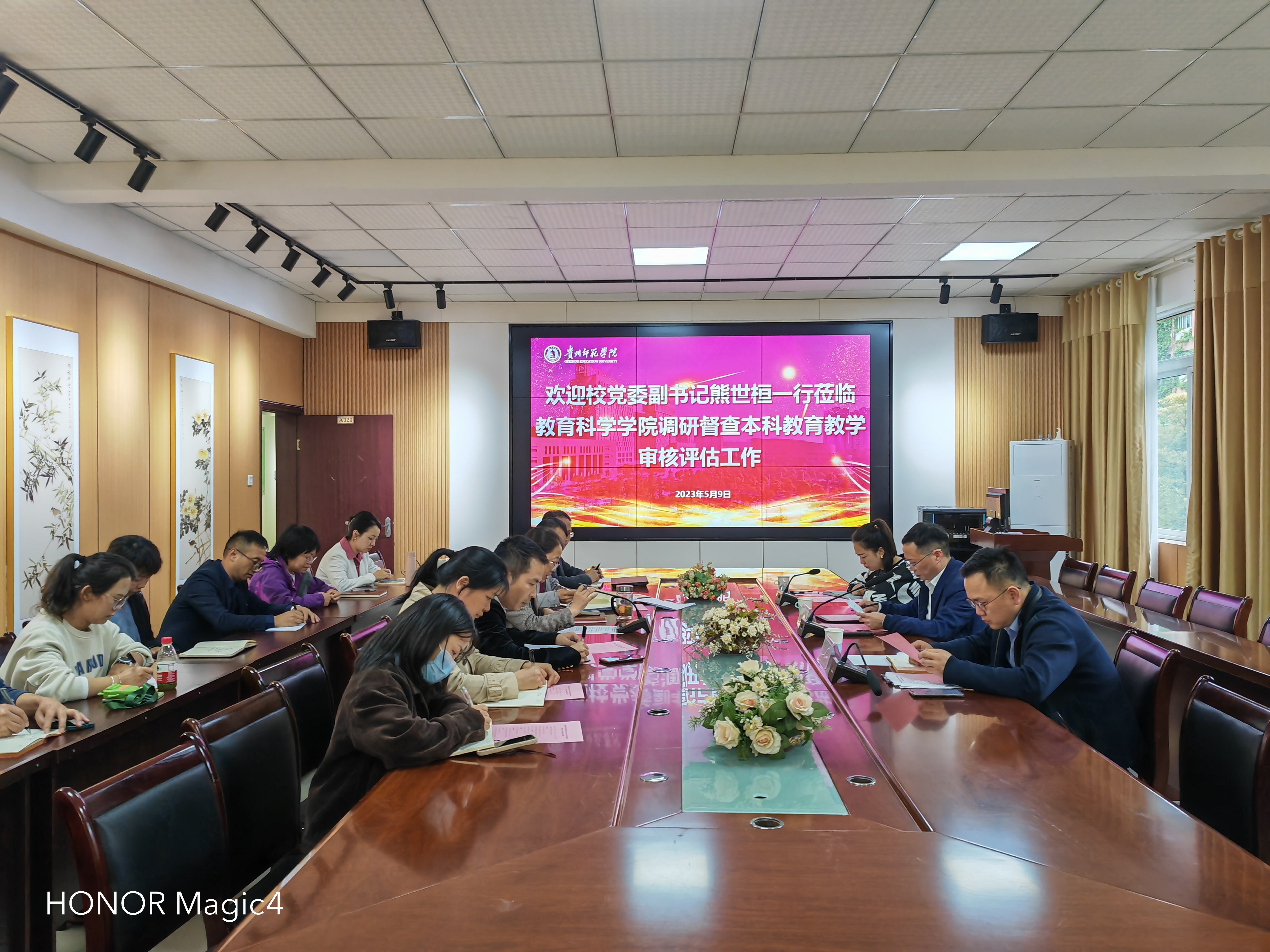 会上,院长宋万琚从学院办学方向与思路、人才培养举措与成效、推动高质量发展存在的差距等三个方面进行了PPT汇报;副院长黎平辉围绕审核评估指标,从学院审核评估工作当前整体情况和各指标模块工作推进情况以及存在的困难进行了简明汇报;参会同志就专业建设、就业质量跟踪与改进、示范性实践基地遴选、公共教育学和公共心理学的教育教学、听课看课、教学档案建设等问题进行了广泛交流研讨。
