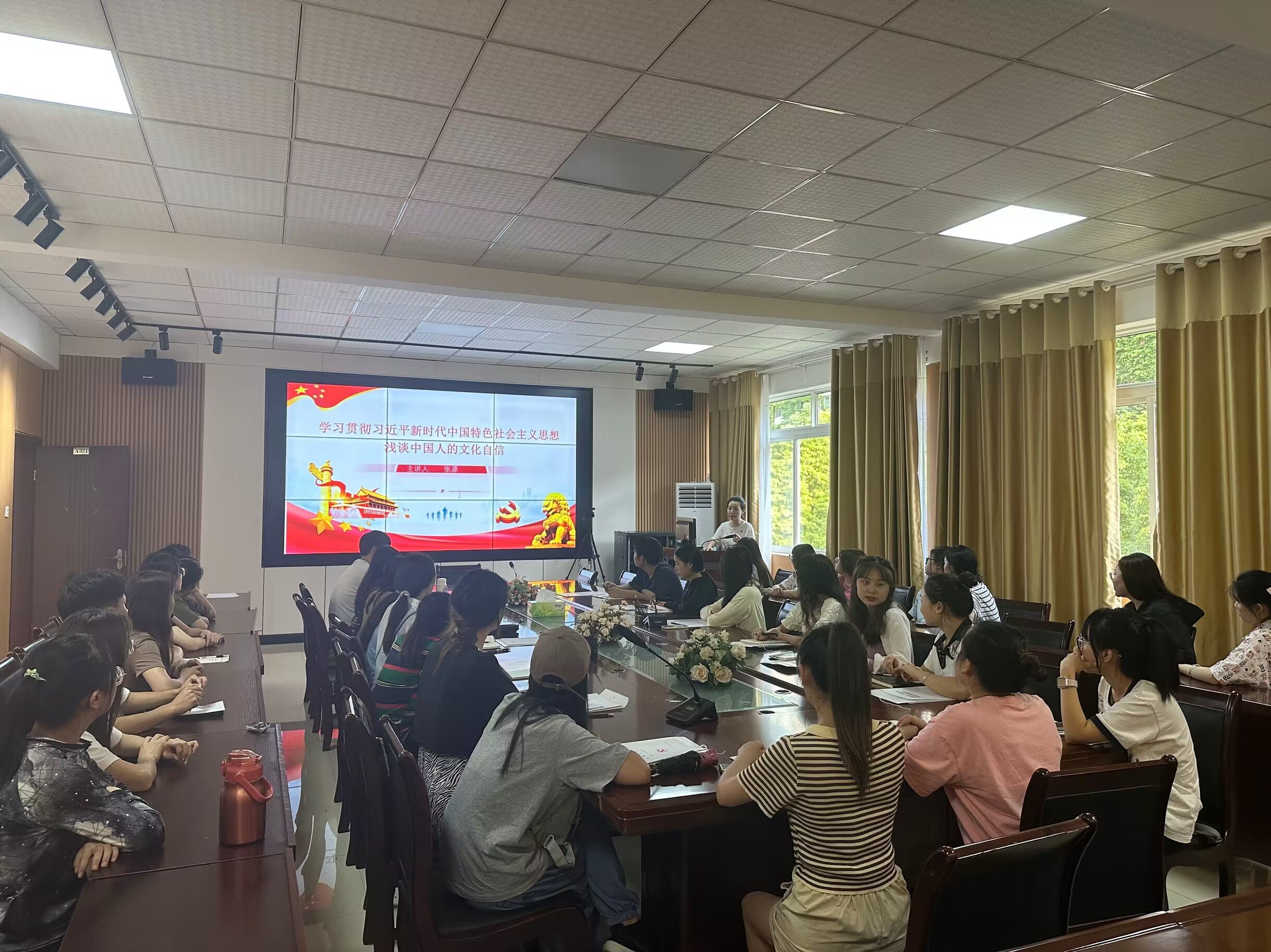 在逸夫楼会议室开展了题为“学习贯彻习近平新时代中国特色社会主义思想 浅谈中国人的文化自信”的专题党课。学院学生党支部书记张源主讲,学院党委副书记傅小芳和学生党支部全体党员参加了此次活动。
