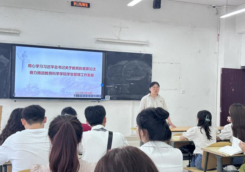 党委副书记傅小芳在逸夫楼301教室开展主题为“习近平总书记关于教育的重要论述 奋力推进动漫花园