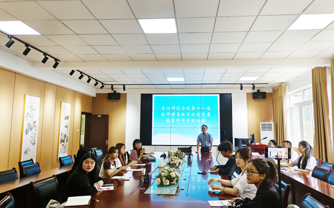 第十一届教师教学技能竞赛院赛,杨曼、罗凯、刘晓红、饶畅四名老师参加了比赛。比赛邀请了校级督导张莹、退休专家李建年、特殊教育专业学科带头人吴晓英、公共心理学教研室主任刘婧和艺术教育专业系主任马慧慧担任院赛的评委。四位参赛老师呈现了四节精彩纷呈、各具特色的课堂:杨曼老师用对比的方法解析了“惩罚与强化”的区别;罗凯老师深入浅出的剖析了“艺术与治疗”的联系;刘晓红老师用贴近学生生活的实例生动地讲授了“学习动力”的类型;饶畅老师用结合自身,让学生全方位了解了“教师”这一职业的角色特点。专家评委们就各位老师的课堂进行了鞭辟入里的点评,最终推选出刘晓红和饶畅两位老师代表教科院参加校级比赛。
