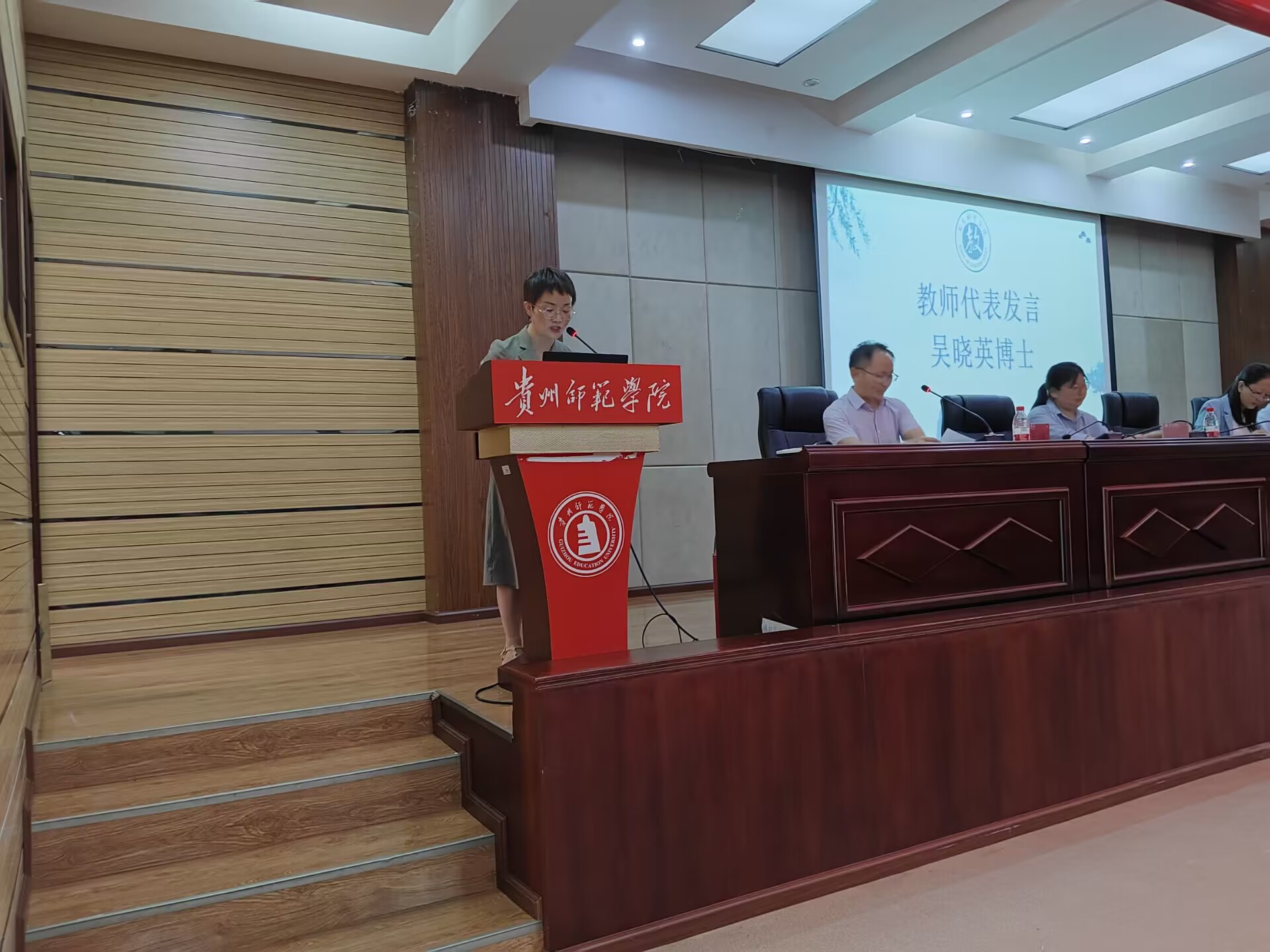教师代表吴晓英博士发言