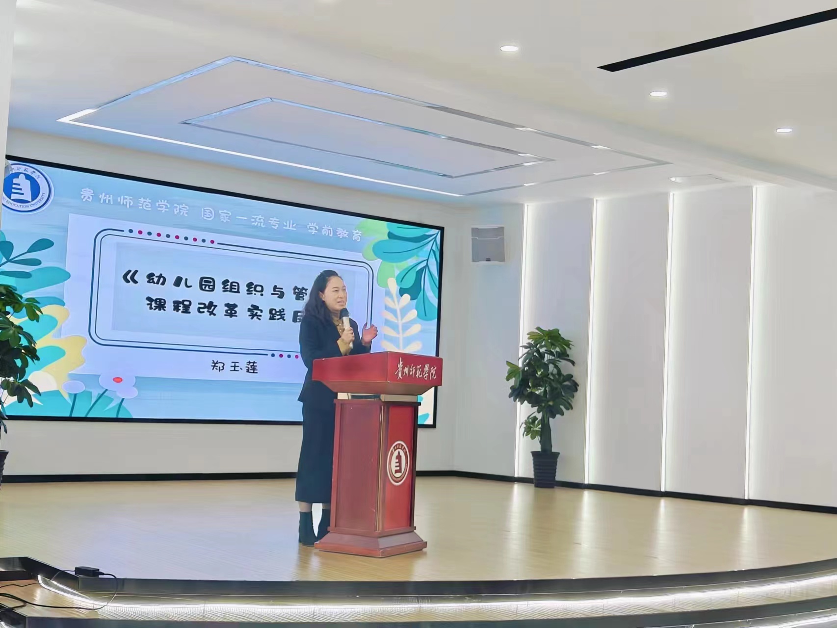 课程主讲老师郑玉莲博士进行“《幼儿园组织与管理》课程改革实践反思”分享,讲述课程教学改革的历程,介绍了课程在线上与线下融合、理论与实践融合、课内与课外融合的具体做法,通过建构强大的实践学习支持系统,为学前教育专业学生提供多元学习平台,打造多元学习机遇。教务处处长邓琴教授发言,肯定了课程实践创新的做法,对学生的产出汇报活动给予高度评价。