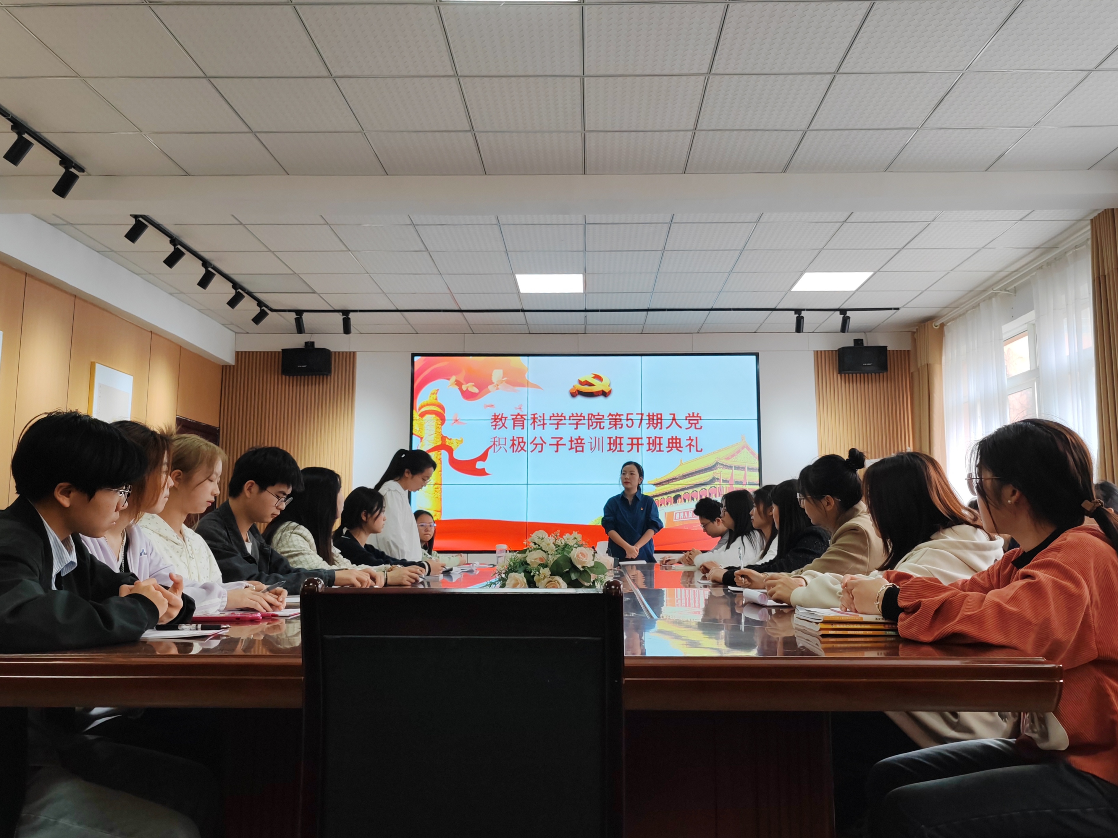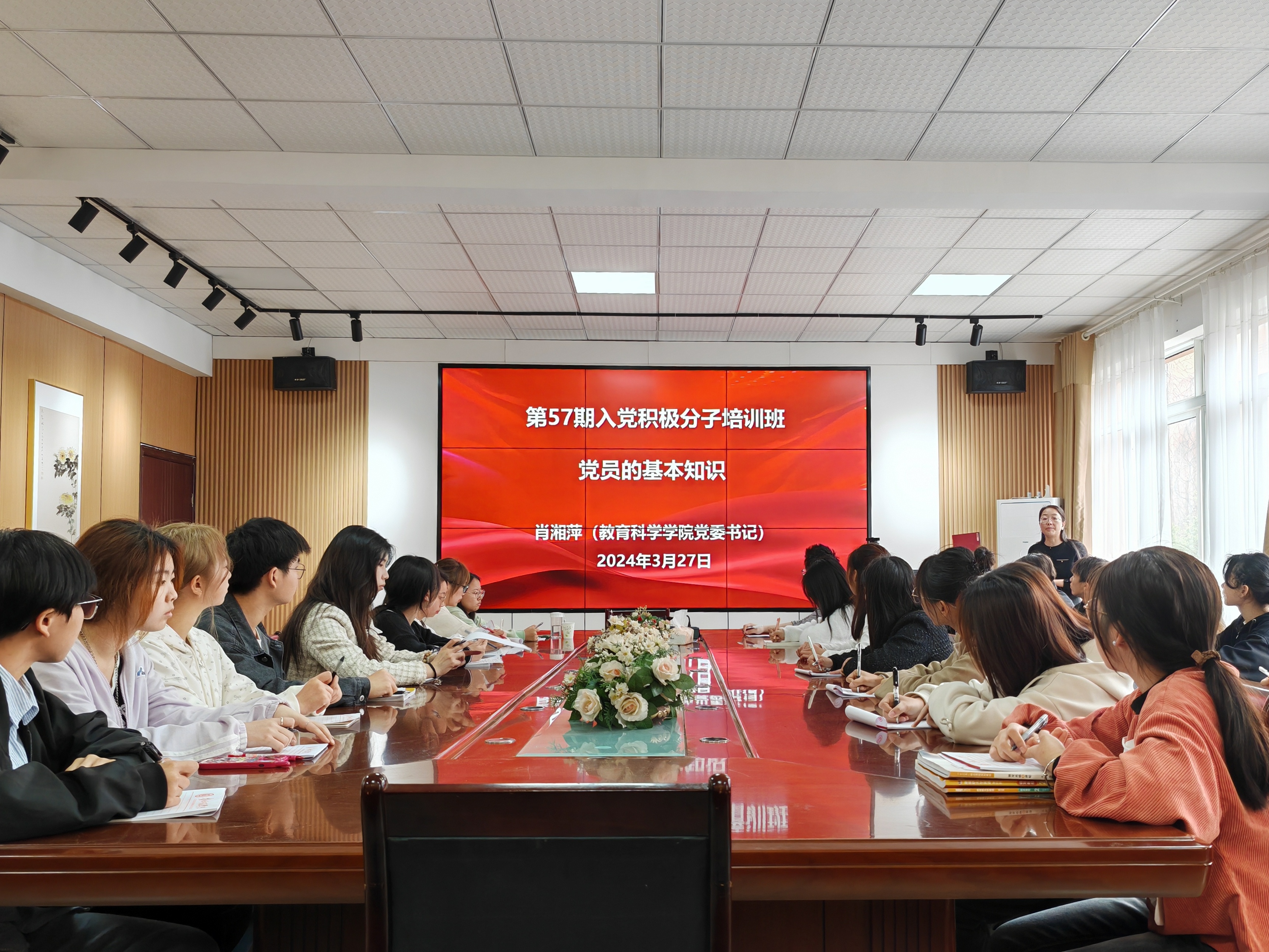 在学院会议室开展第57期入党积极分子培训班开班典礼暨第一次专题党课。学院党委书记肖湘萍、学院学生党支部书记张源以及全体入党积极分子参加了开班典礼。