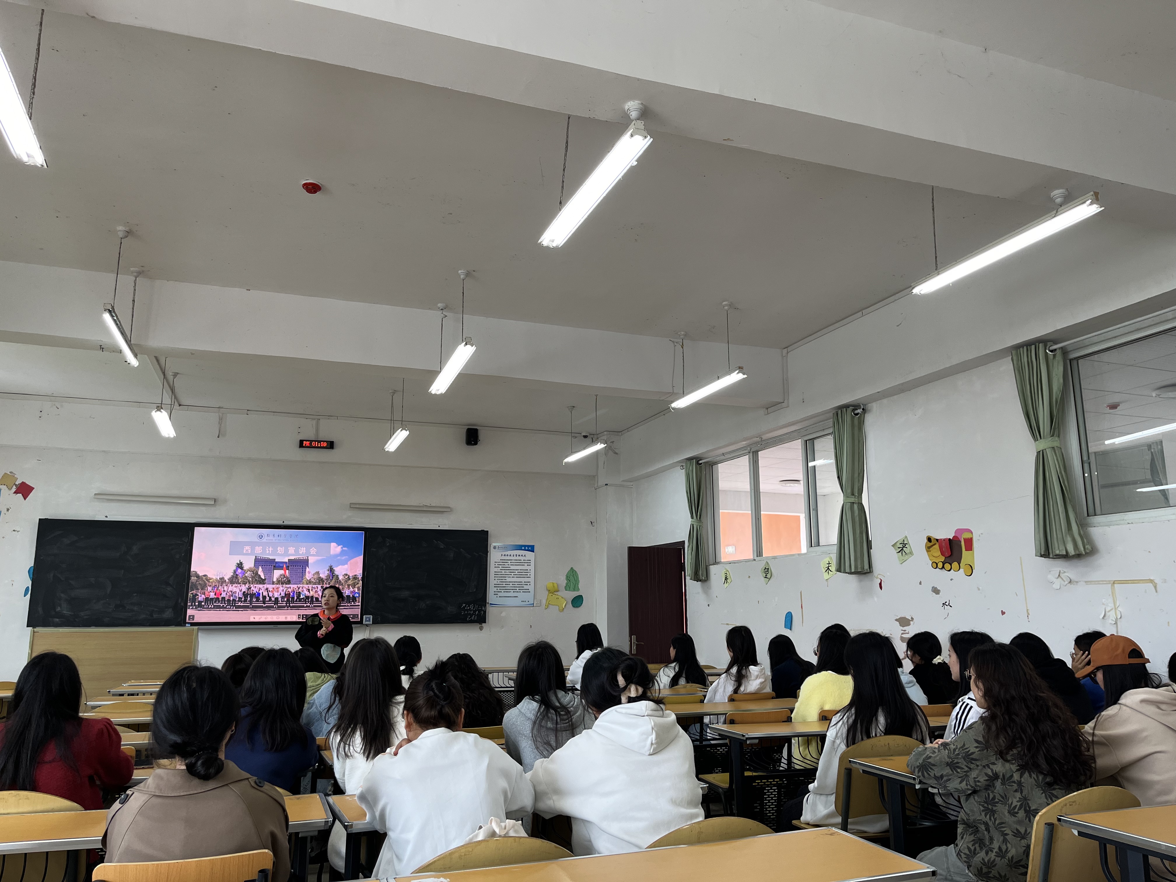 在宣讲会上,张源介绍了西部计划报名方式和流程,还详细讲解了参与西部计划的福利政策,以及学院报名流程、体检、笔试面试、参加心理测试等环节,她鼓励同学们积极报名,奉献青春积累经验。
