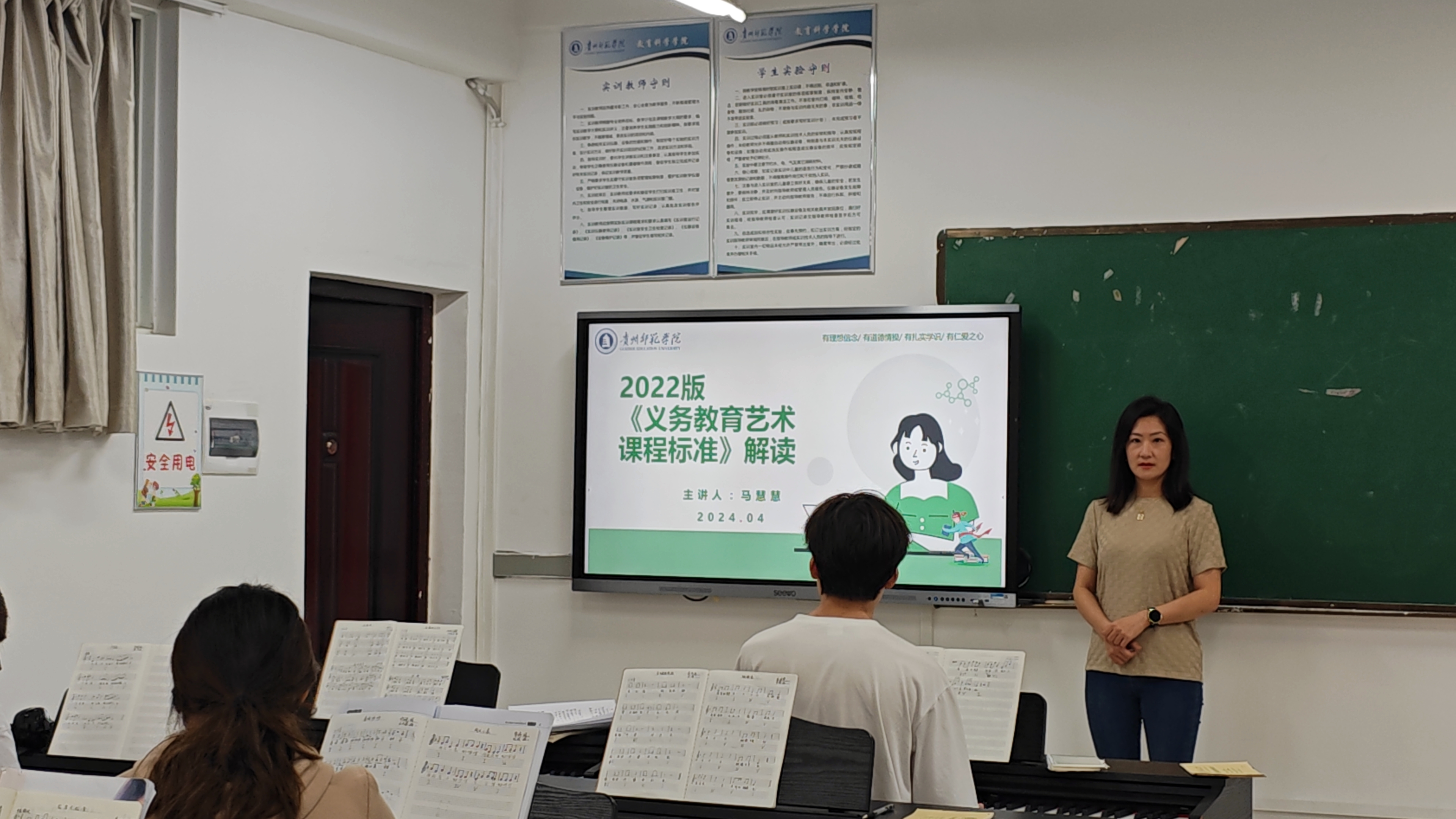 为了更好的落实艺术教育专业人才培养方案,营造良好的学术气氛,4月16日中午,艺术教育专业系主任、副教授马慧慧老师在逸夫楼A415教室,为艺术教育专业学生开展2022版《义务教育艺术课程标准》的专题讲座。