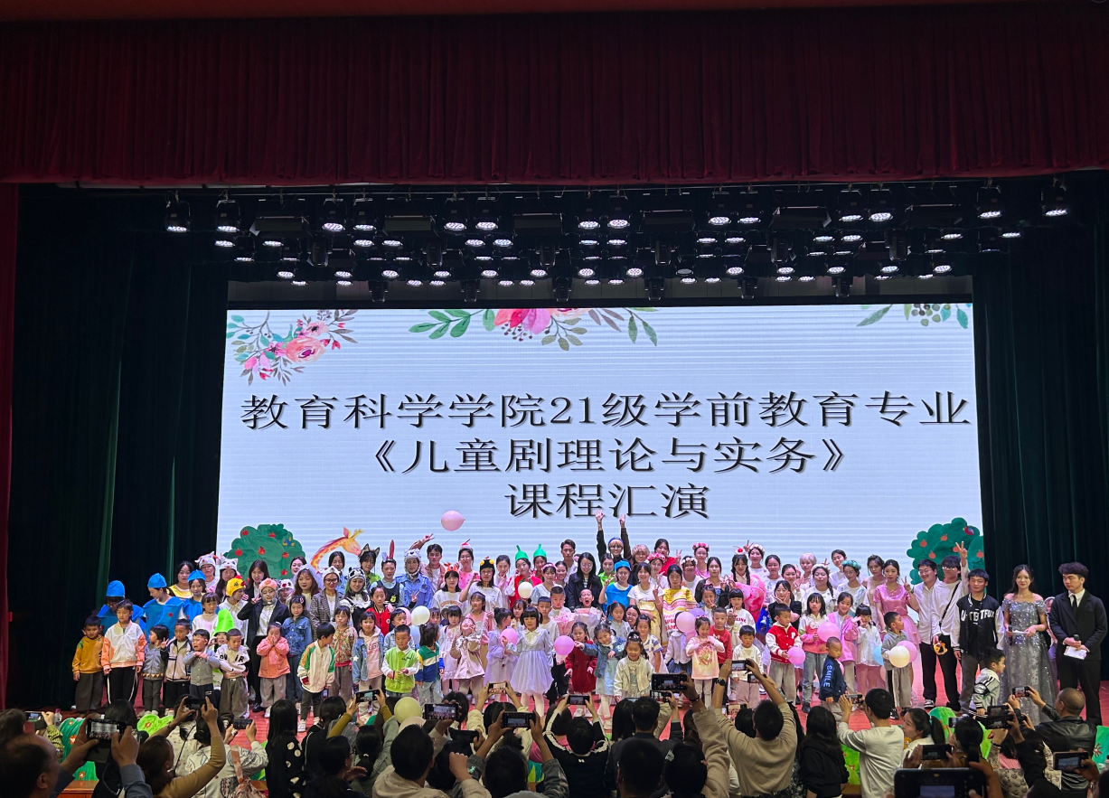 学前教育专业2021级学生在逸夫楼演播厅举办了《儿童剧理论与务实》课程汇演活动。本次汇演吸引了数百名1-8岁贵阳市儿童及其家长到场观看,产生了较大的社会影响。
