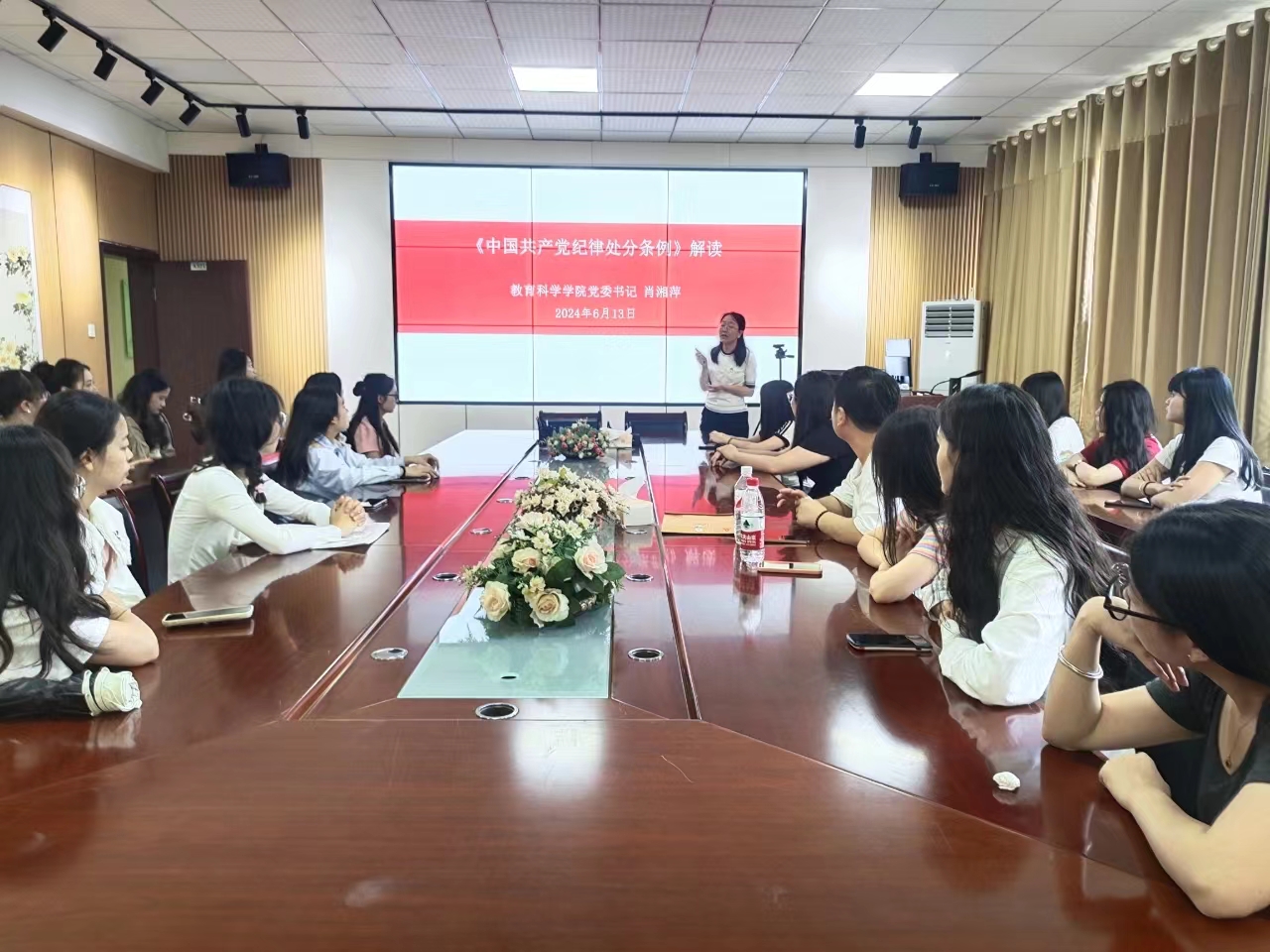 党委书记肖湘萍作新修订《中国共产党纪律处分条例》解读专题讲座,学生党支部代表参加。