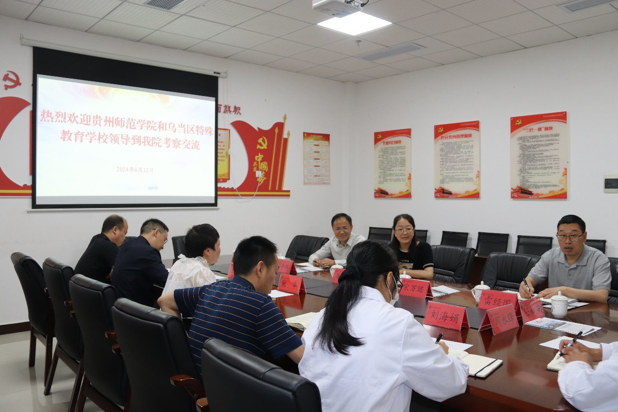 教科院领导班子一行到访表示诚挚欢迎,并简单介绍了班子成员情况,然后详细介绍了贵州省康复医院成立、开业、发展历情况,科室建设、儿童康复特色、教科研等方面的情况。