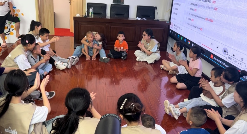 上午,志愿者们给先到达的小朋友发放曼陀罗绘画以及各种各样的彩笔,小朋友们使用自己喜欢的彩笔进行创作绘画。随后志愿者们为小朋友们准备了各种各样的律动操,并带领小朋友们一起活动,志愿者引领小朋友们上台一起给台下的家长们进行律动操表演,志愿者们为所有的小朋友分发奖励,随后志愿者安排小朋友们围圈坐下进行击鼓传花游戏。下午,志愿者安排小朋友们一起参加穿插智力棒游戏,随后志愿者们带领小朋友活动律动操来活跃气氛,志愿者引导小朋友们进行“小鱼风铃”涂色游戏。通过这些游戏激发孩子们的想象力,同时拉进与志愿者的距离。