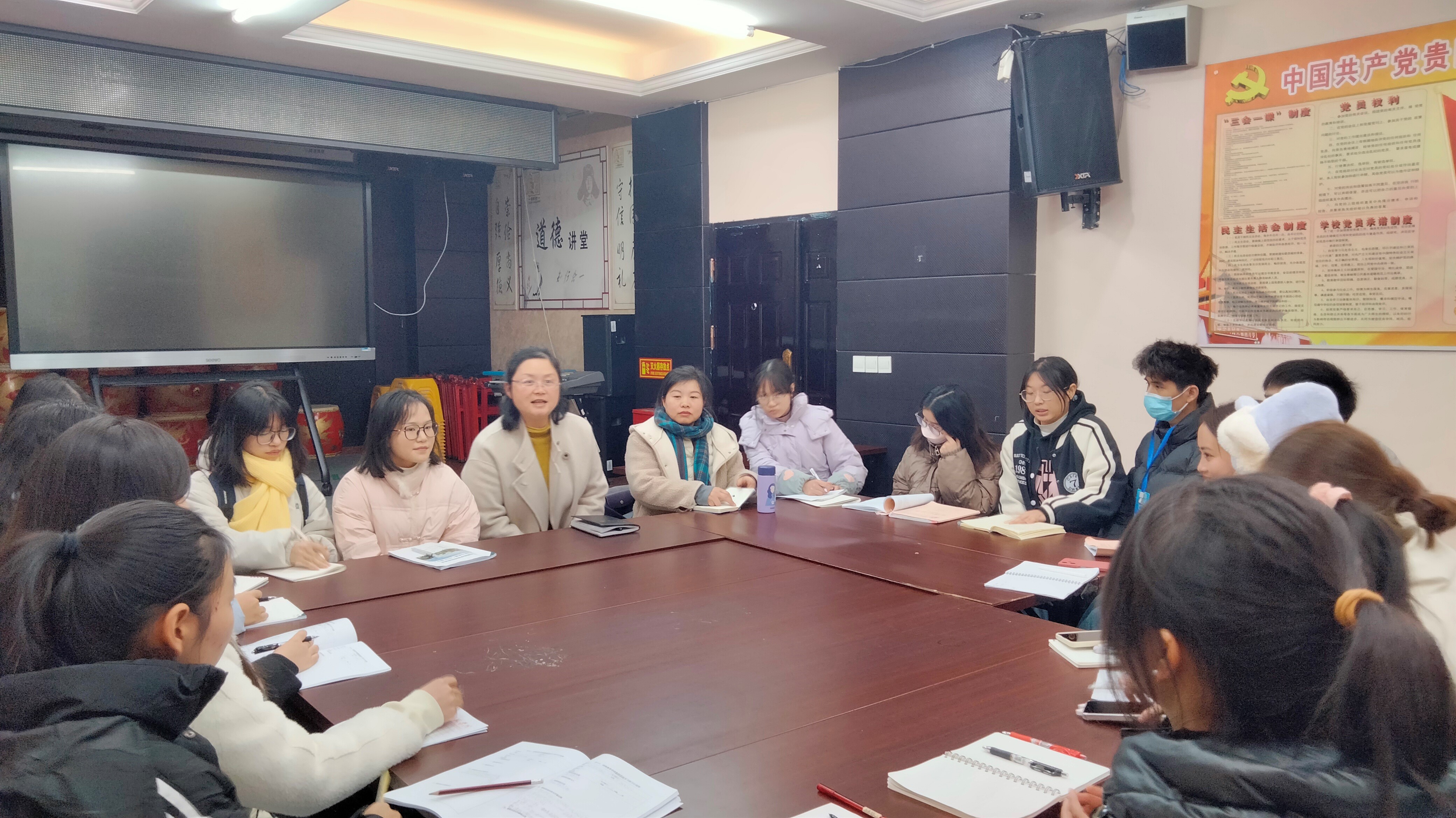 第二个环节是师生交流活动。赵主任介绍了云岩区惠智学校的基本情况,学校作为云岩区特殊教育资源中心,有在校生126名,送教生45名。学校的管理教学管理采取包班制,3个老师负责一个班级,同时老师每周还有送教上门等教学工作。紧接着的是我校2021级的6名实习生做了实习经验分享,为见习同学们分享了他们在实习中出现的问题以及处理办法、如何处理突发状况等。最后是见习学生的疑问解答,通过提问交流,同学们进一步了解了特殊儿童毕业去向安排以及家长陪读、融合教育巡回指导等方面的事宜。