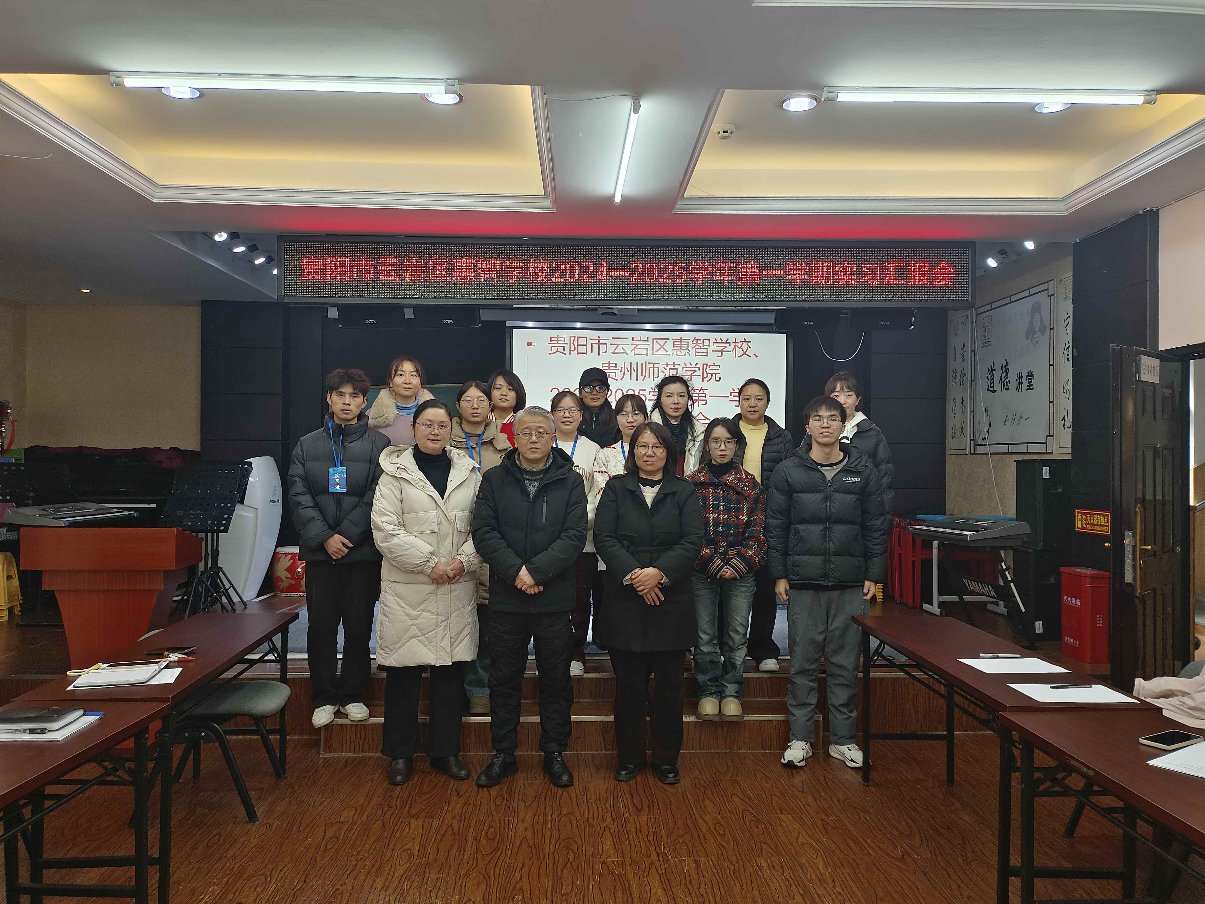 夏卉芳教授和其带队的6名该校实习生等相关人员进行2024-2025学年第一学期的实习总结汇报会。
