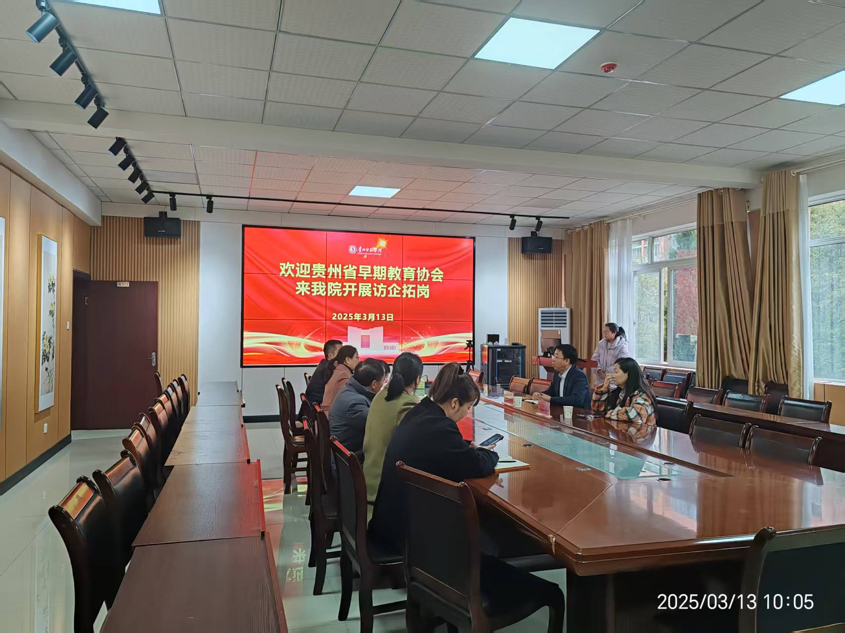 在逸夫楼A321会议室举行访企拓岗交流会。贵州省早期教育协会会长石宇波、协会成员谢忠丽、动漫花园
