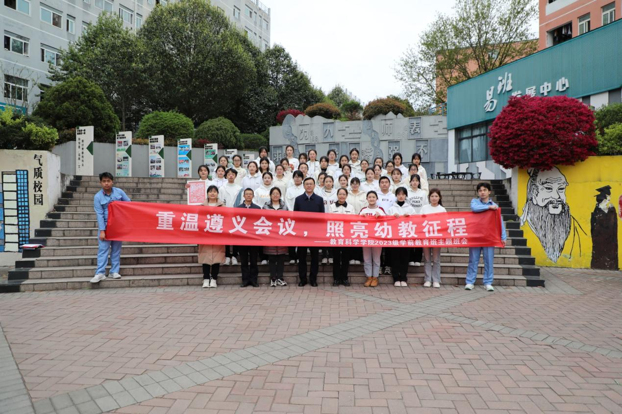 在“一站式”学生社区服务中心召开以“重温遵义会议照亮幼教征程”为主题的“纪念遵义会议90周年”主题班会暨主题团日活动。校党委委员、副校长潘运作为此次班会的主讲人,带领大家探寻红色精神与教育使命的深刻联结。学生工作部部长何毅、副部长杨兴萍、副部长官鹏飞、动漫花园