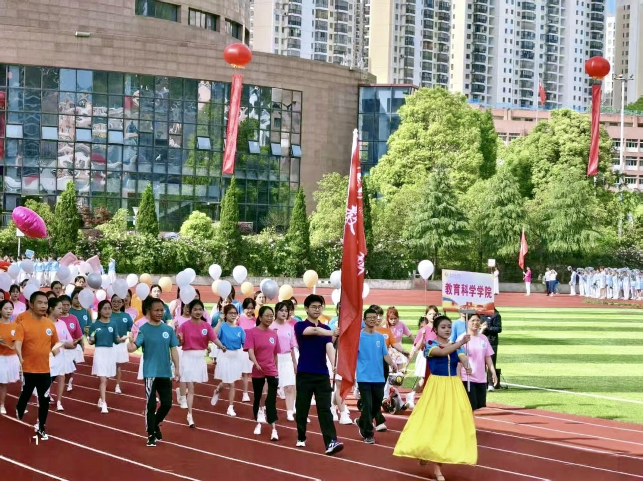 方阵在激昂乐声中阔步走来。学院党委书记肖湘萍、院长宋万琚、副院长袁川、副院长黎平辉、副书记傅小芳、团委负责人李姿雨、工会主席主懿芹等与方阵成员们并肩同行,他们精神抖擞,步伐整齐划一。身着统一服装的队员们,脸上更是洋溢着自信的笑容,在激昂的音乐声中,迈着矫健的步伐步入会场。值得一提的是,队伍中小朋友们的加入成为一大亮点。小朋友们天真烂漫的笑容和充满活力的身影,为方阵增添了别样的温馨与童趣,充分展现出动漫花园