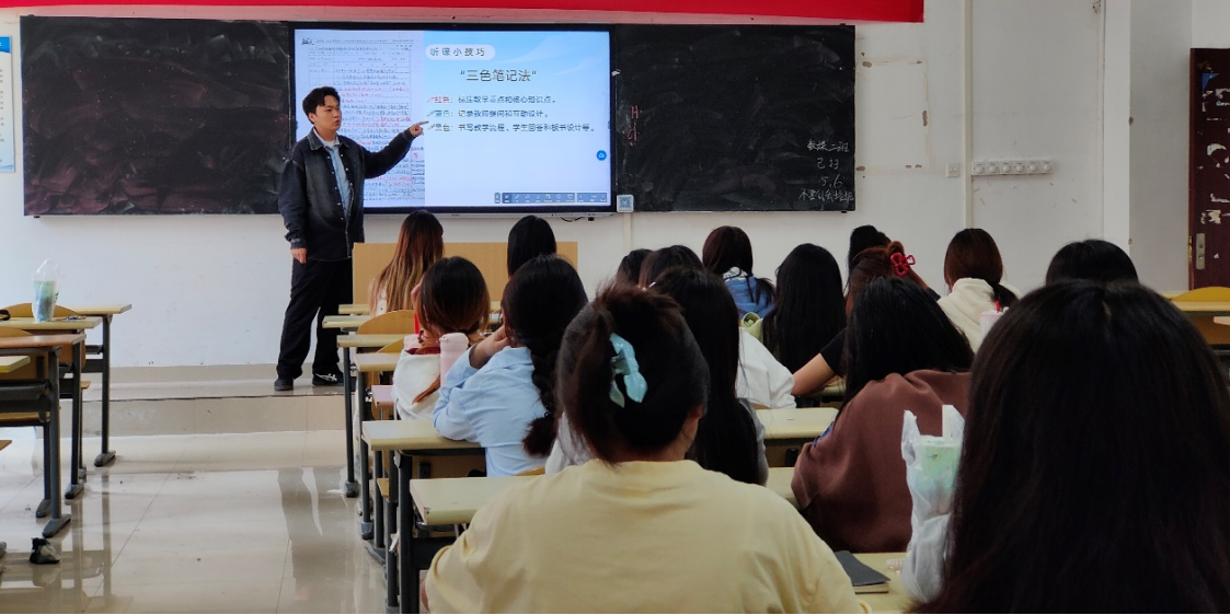 系主任雷经国老师在总结中肯定了三位分享者的实践成果,强调教育实习是理论与实践融合的“试金石”。他对同学们提出三点期望:一是重视“读书分享会”等前期准备环节,通过教育经典研读与案例研讨筑牢理论根基;二是在实习中保持“空杯心态”,主动向一线教师请教,注重课堂细节观察;三是强化责任意识,将师德规范贯穿于教育教学全过程,既要关注学生学业发展,更要守护学生身心健康。