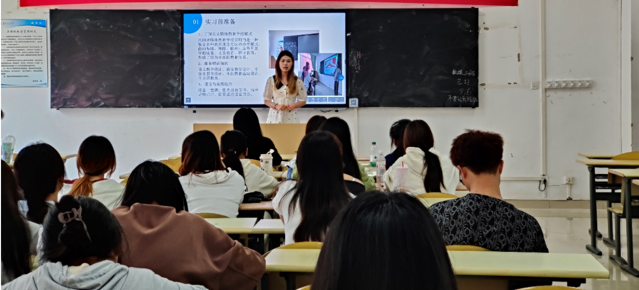 第三位来自贵阳市特校的实习的石单学姐则生动介绍了市特校的师资配置、课程特色及学生培养。她特别提到几位骨干指导教师,让同学们深切感受到特教教师的专业坚守与育人情怀。