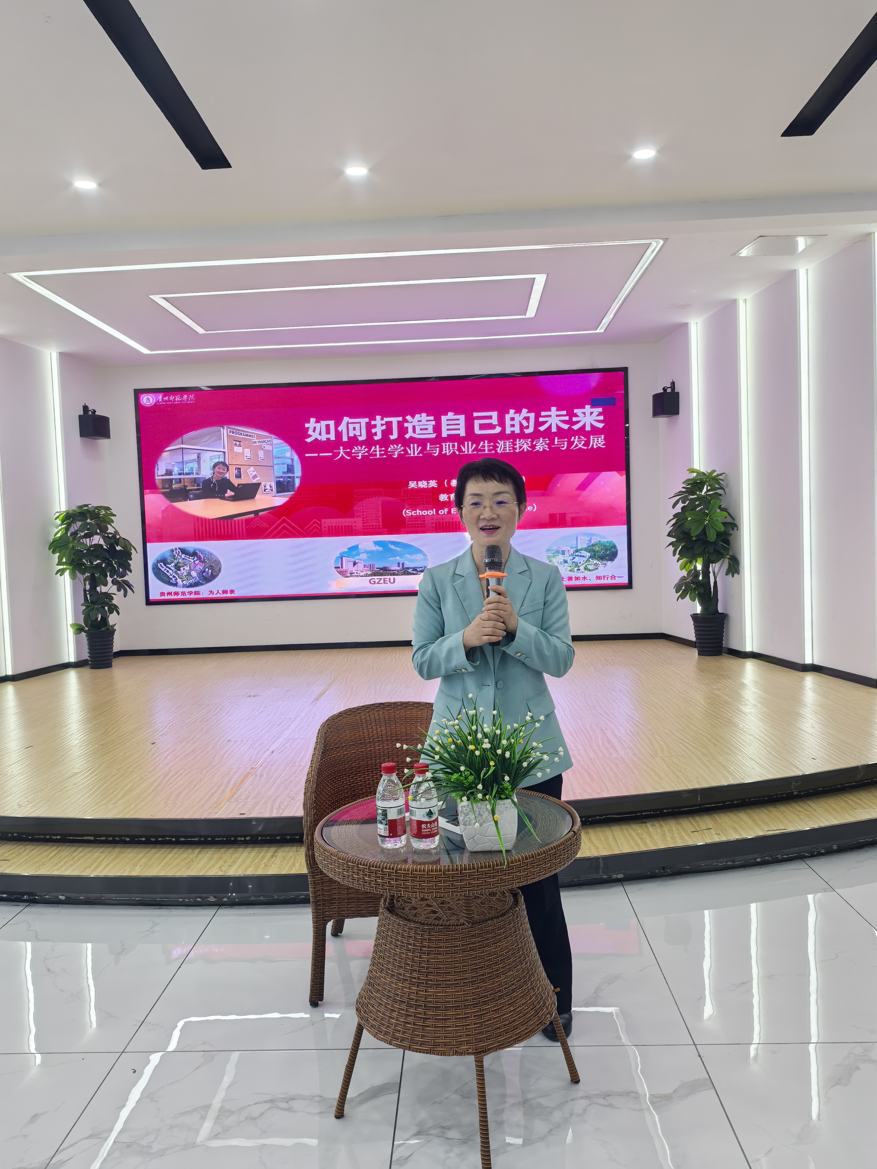 活动开始前,傅小芳对吴晓英的到来表示热烈的欢迎和感谢,并指出职业规划对于大学生的重要性,希望同学们珍惜这次面对面活动的机会,在充分与吴老师的交流中得到启发,正确规划自己的学业和未来的职业选择。