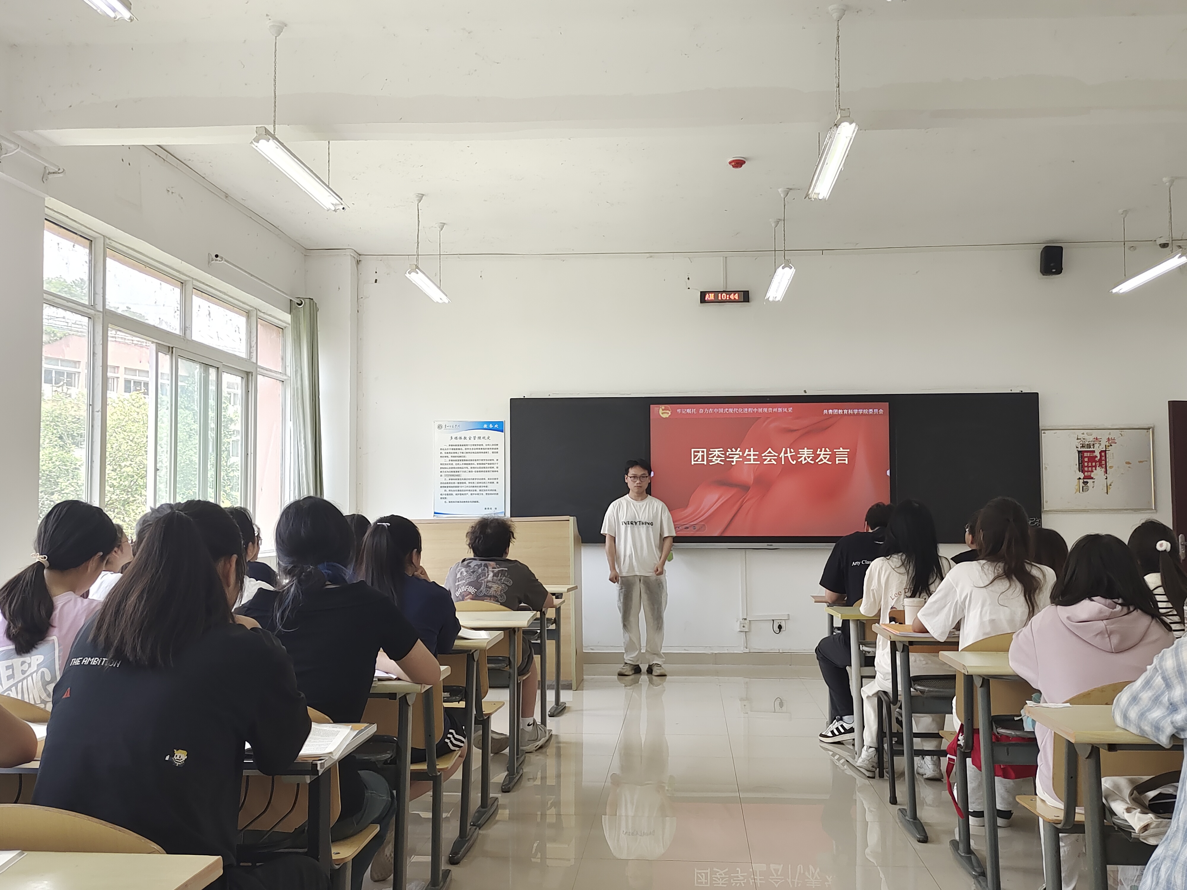 首先,李姿雨紧扣三项核心内容开展领学,强调共青团要坚守政治本色,引领青年在强国建设中挺膺担当,号召学习支教志愿者扎根边疆的奉献精神,并部署将学习成果转化为服务教育强国建设的实际行动。紧接着,学生交流讨论环节,团委学生会代表舒林表示:在接下来的工作中会“创新服务形式,助力同学成长成才”。优秀学生代表文婷婷立志:在以后的学习中会“锤炼‘四有’好老师素养,躬耕教坛报国”。