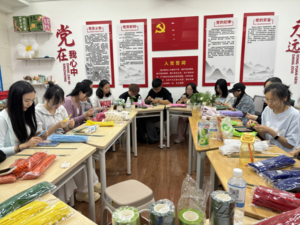 功能型团支部在院活动室内精心策划并举办了“编织梦想、手创生活”主题创意手工编花活动。