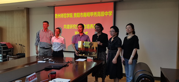 教育科学院院长宋万琚、副院长袁川等一行前往贵阳南明甲秀高级中学,就研究生联合培养基地事宜与贵阳南明甲秀高级中学展开深入交流与探讨,并成功签订合作协议,举行授牌仪式。此次合作旨在充分整合双方教育资源,共同探索创新人才培养模式,提升研究生培养质量,为教育领域输送更多优秀专业人才。