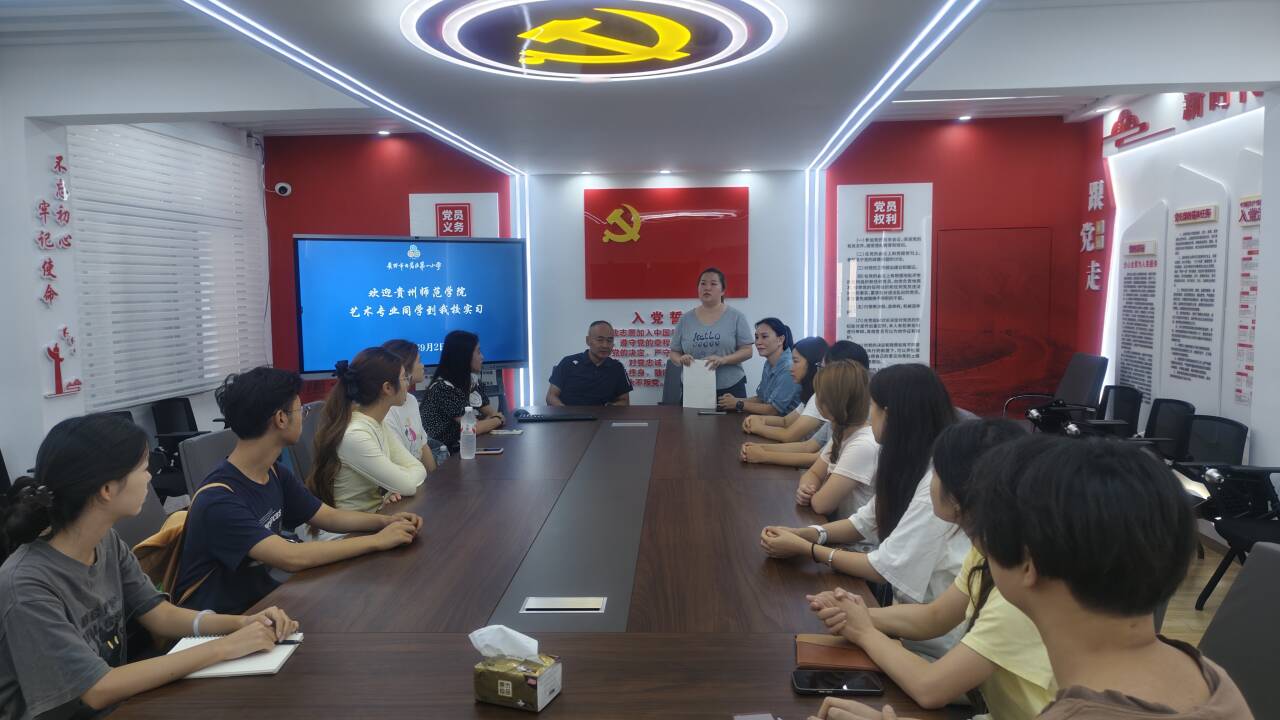 2025年9月2日上午9点,龙雪梅老师带领艺术教育专业12名同学到贵阳市云岩区第一小学分校区实习报到,并召开云岩一小实习指导教师培训交流会。