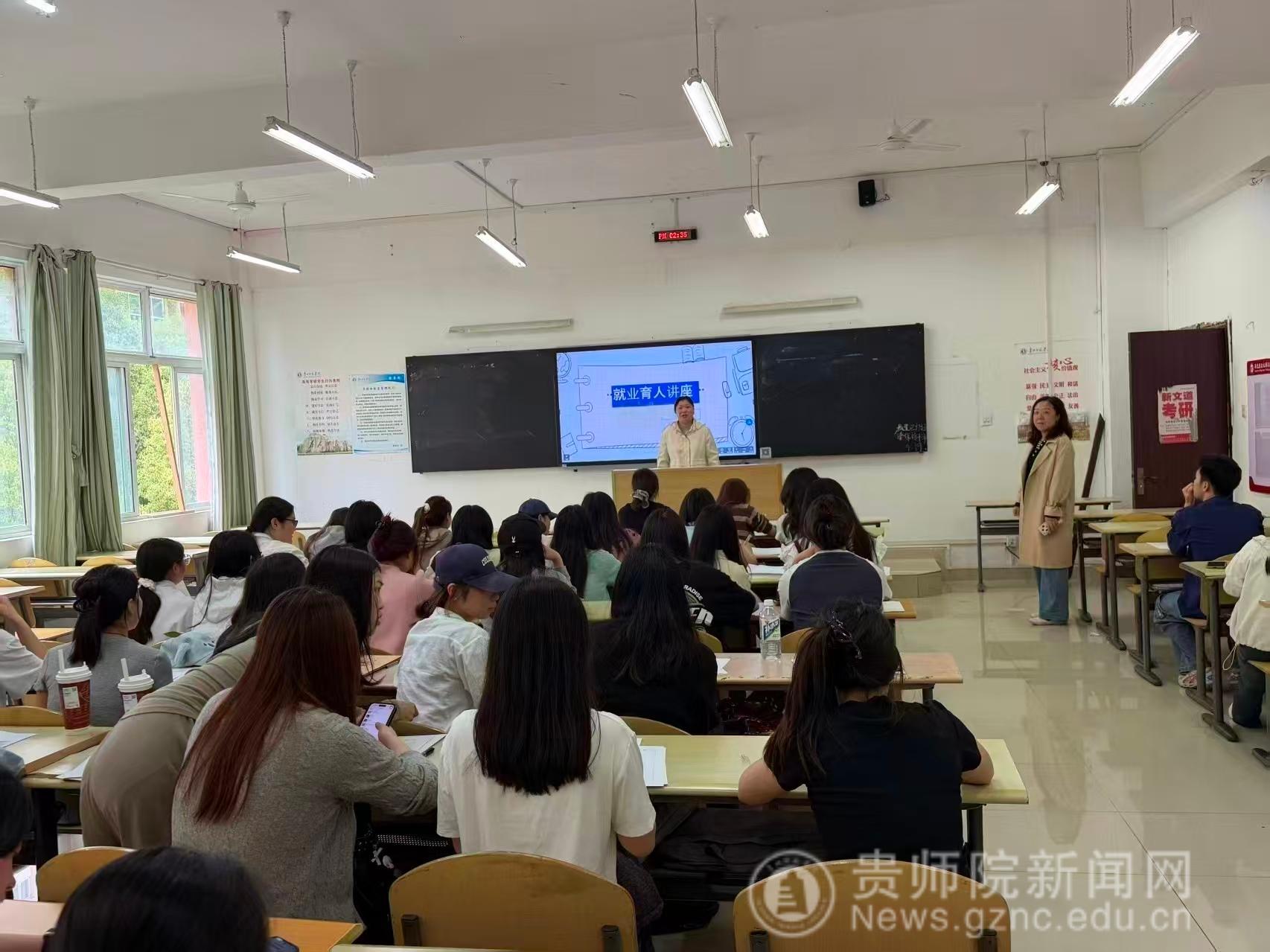 在逸夫楼201举办了就业育人专题讲座。本次讲座由辅导员罗婷主持,学院党委副书记傅小芳主讲,2022级学前教育专升本班全体学生到场聆听。