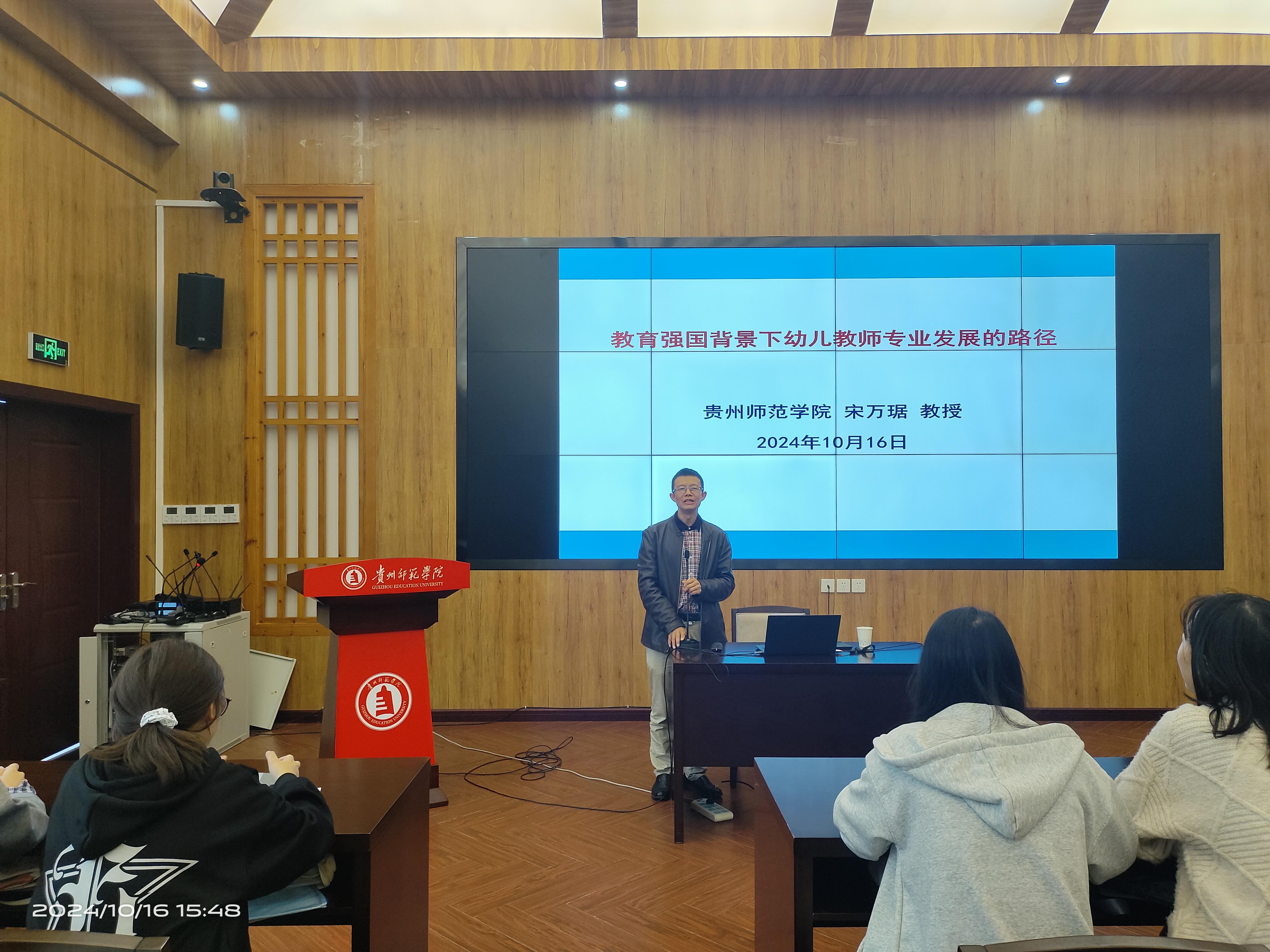 院长宋万琚教授在印山书院山骨讲堂为23级学前教育专业学生作题为《教育强国背景下幼儿教师专业发展的路径》的学术讲座。