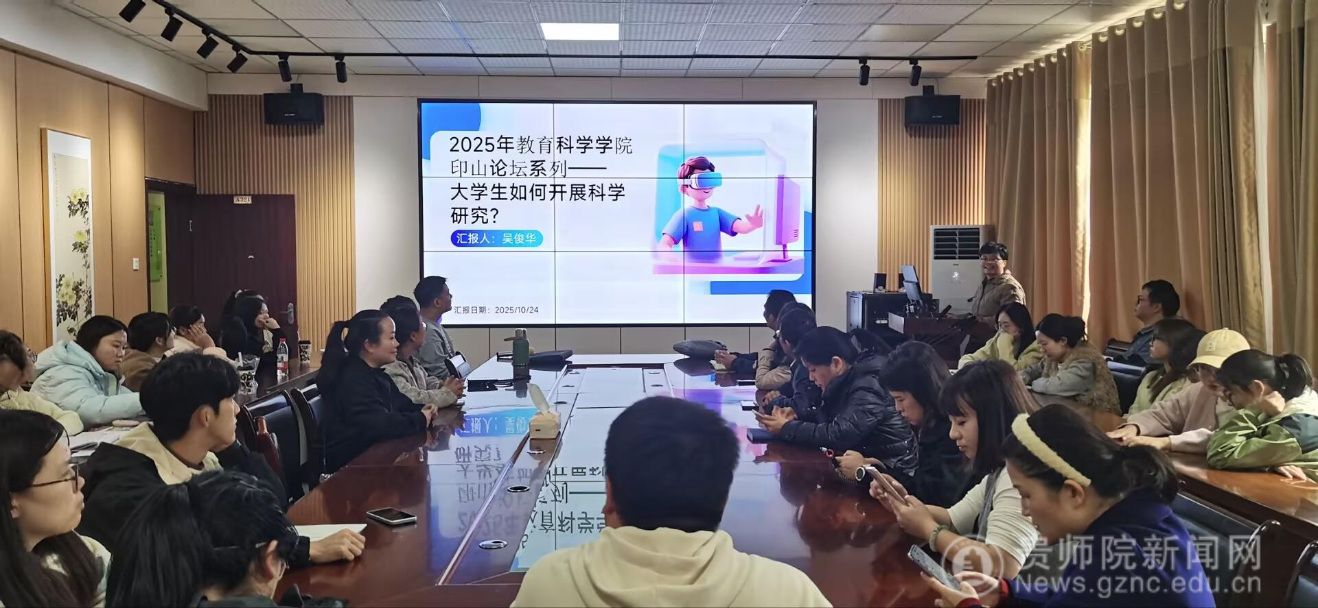 在学院会议室举行2025年印山讲坛学术讲座,吴俊华博士以《大学生如何开展科学研究?》为题,为师生们带来一场精彩的学术讲座。内容涵盖从科研认知、选题立项、文献检索到实验设计、论文写作的全流程,强调兴趣驱动与可行性分析,并分享高效工具和真实案例,帮助本科生系统入门科研,提升创新能力与学术素养。