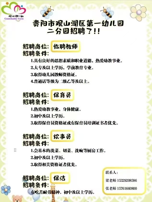观山湖区第一幼儿园二分园招聘