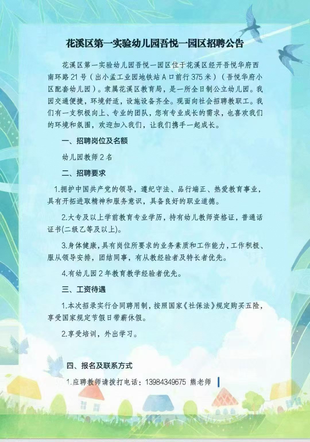 花溪区第一实验幼儿园吾悦一园区招聘
