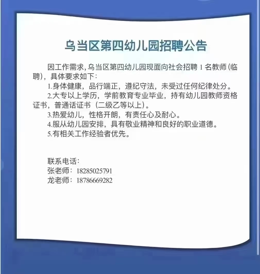 乌当区第四幼儿园招聘