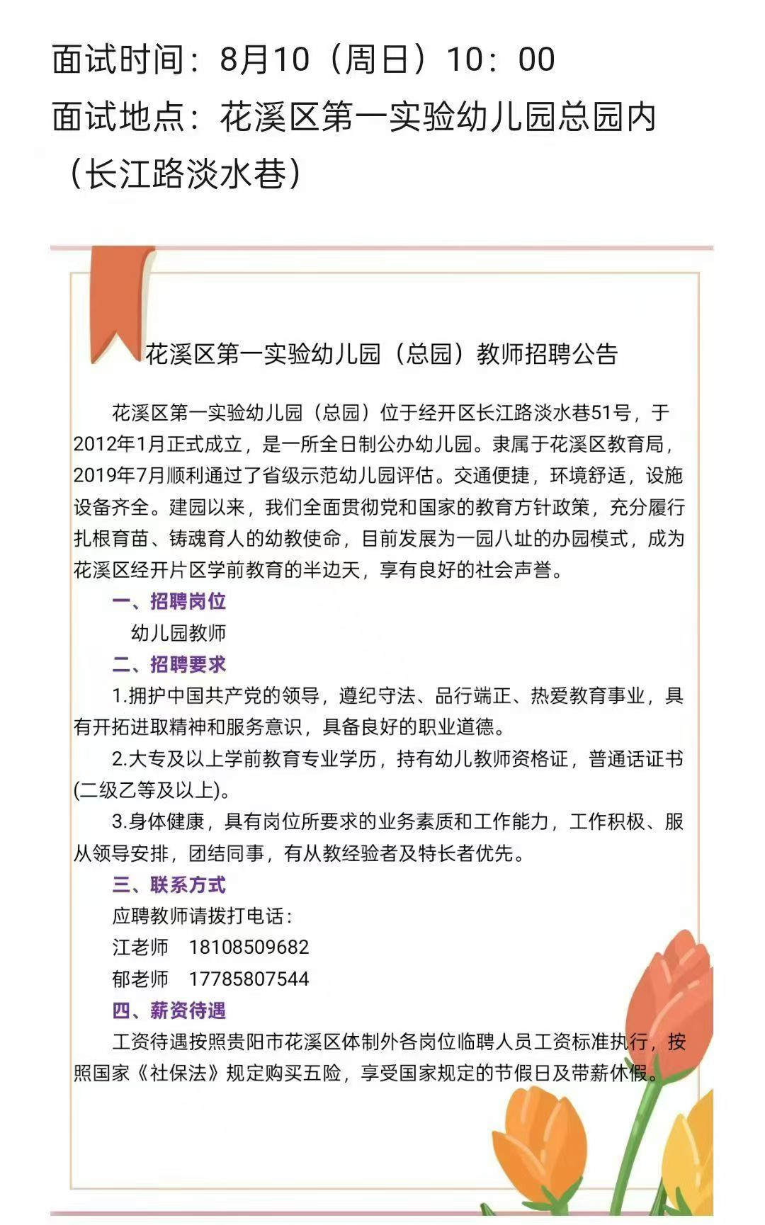 花溪区第一幼儿园总园招聘